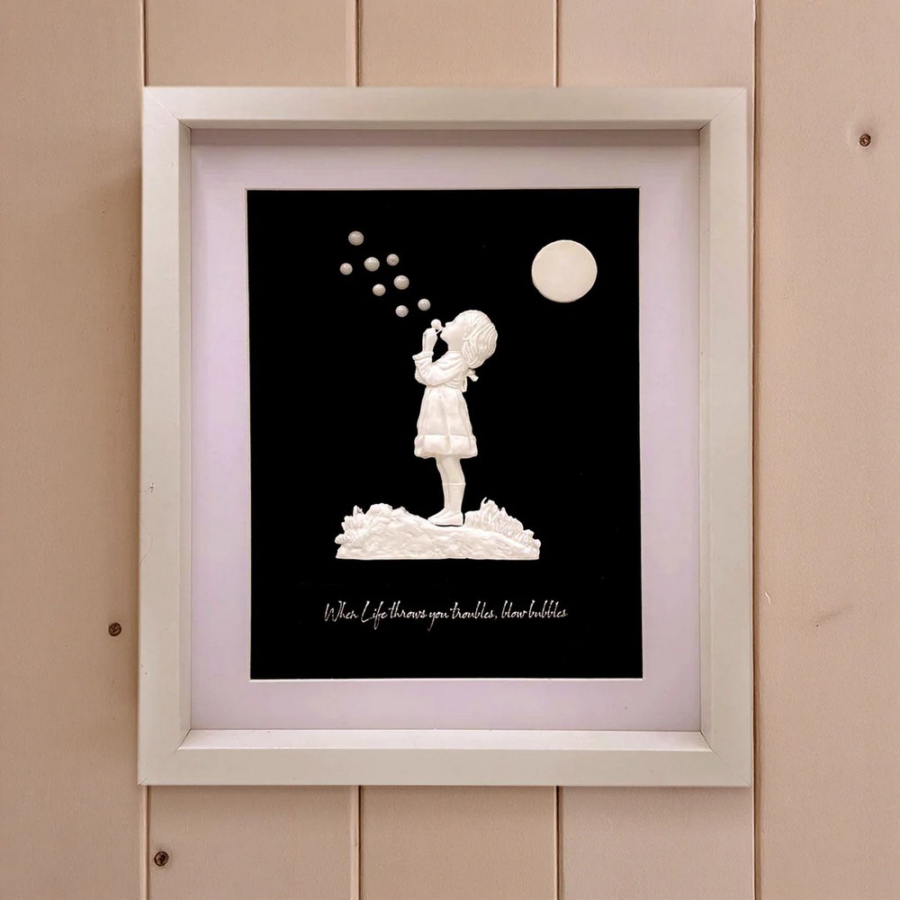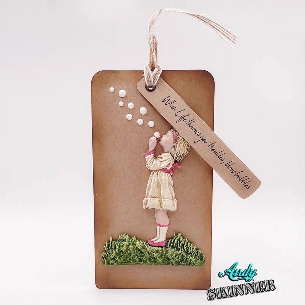 Capture a moment of pure childhood wonder with this beautifully detailed silicone mould by Andy Skinner. Inspired by Andy’s original Blowing Bubbles stamp, the mould features the delicate silhouette of a young girl in profile, joyfully blowing bubbles into the air. The design is rich with the timeless charm and innocence of bygone days, echoing Andy’s own family memories and the magic of imaginative play.