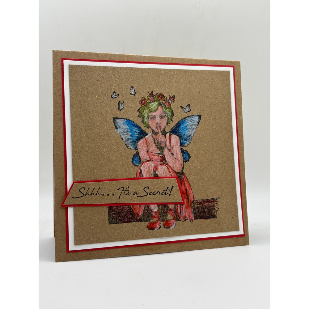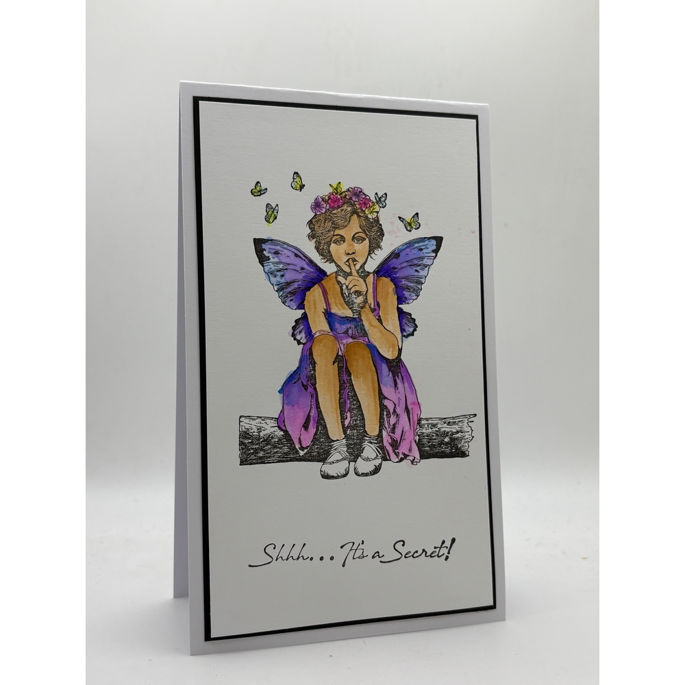 This evocative design features a young girl wearing ballet shoes, seated quietly on a log with her finger held to her lips. Her tousled hair releases fluttering butterflies, echoed by the delicate butterfly wings on her back, creating an ethereal, dreamlike atmosphere. The stamp also includes the handwritten-style sentiment “Shhh… It’s a secret!”, adding charm and narrative intrigue to your work.