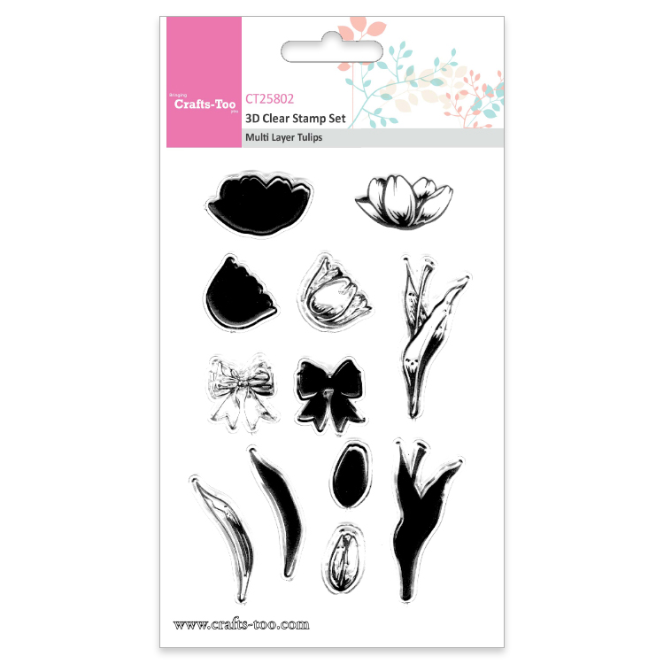 Crafts Too Multi Layer Tulips has a total of 12 stamps that are manufactured from a high quality photopolymer. This means that the stamps are clear and that you get a high quality image every time you stamp.