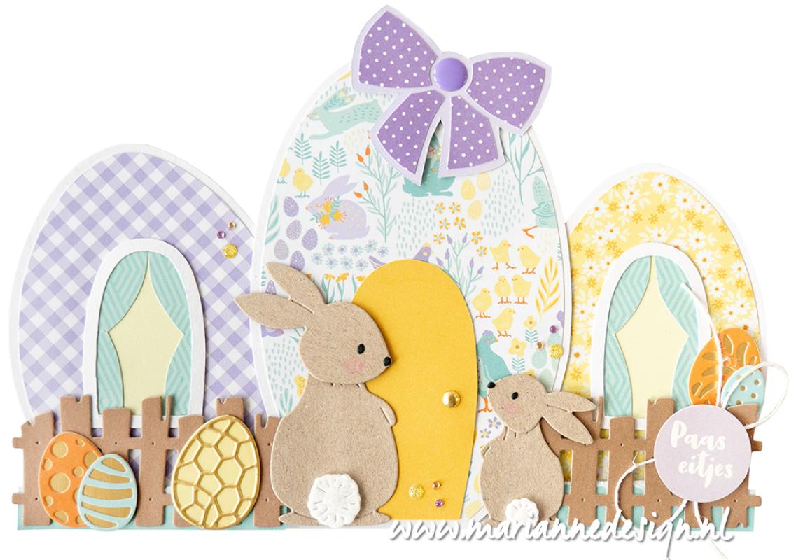 Marianne Design thin metal cutting dies for use with a die cutting machine to quickly and easily cut beautiful bunny shapes for card making, scrapbooking and other craft projects. Cutting dies will cut paper, card, craft foam, thin craft metal foils and wool felt.