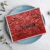 This gorgeous 5 in x 7 in Rose Garden embossing folder features beautiful floral blooms. This embossing folder is compatible with leading die cutting machines. This folder will give a deep impression and create a detailed design with a sculpted emboss effect on paper, cardstock vellum, metal, foil, and other surfaces. This embossing folder can be used with Cosmic Shimmer Polishes, Glitter Kiss, Colour Cloud Blending Ink, and other mixed media products. For best results, mist your paper with water before running it through your machine. This folder can be used for cards, scrapbook pages, and other paper crafting projects. Made In China. 1 Embossing Folder. Size 5 in x 7 in (12.7 cm x 17.8 cm).