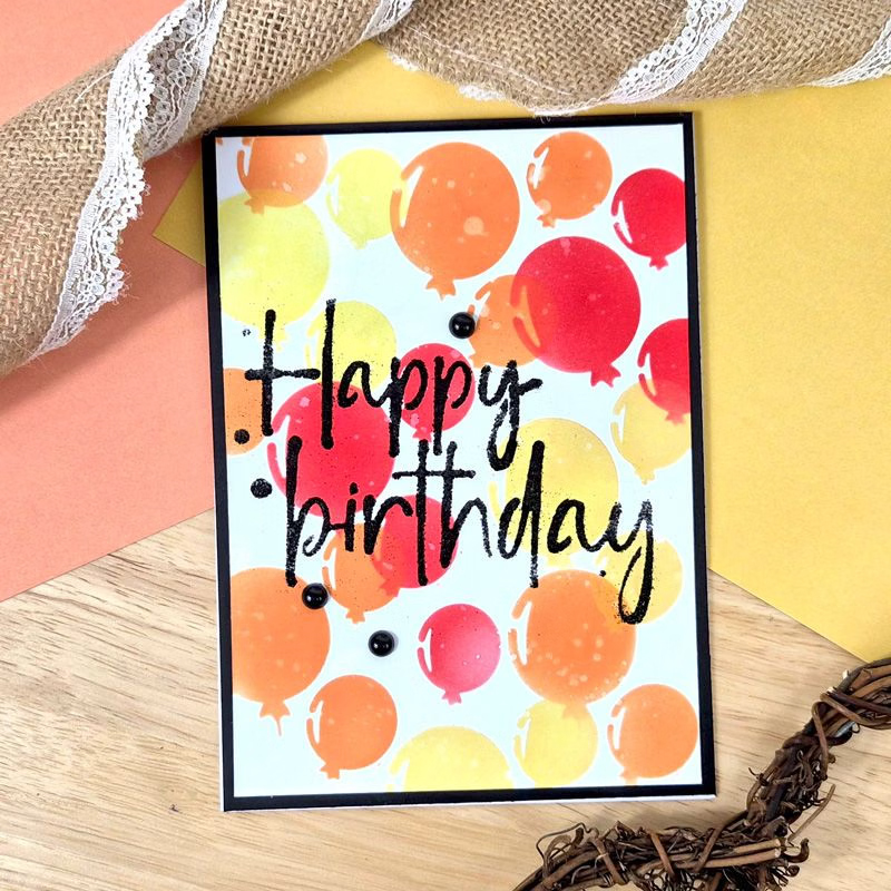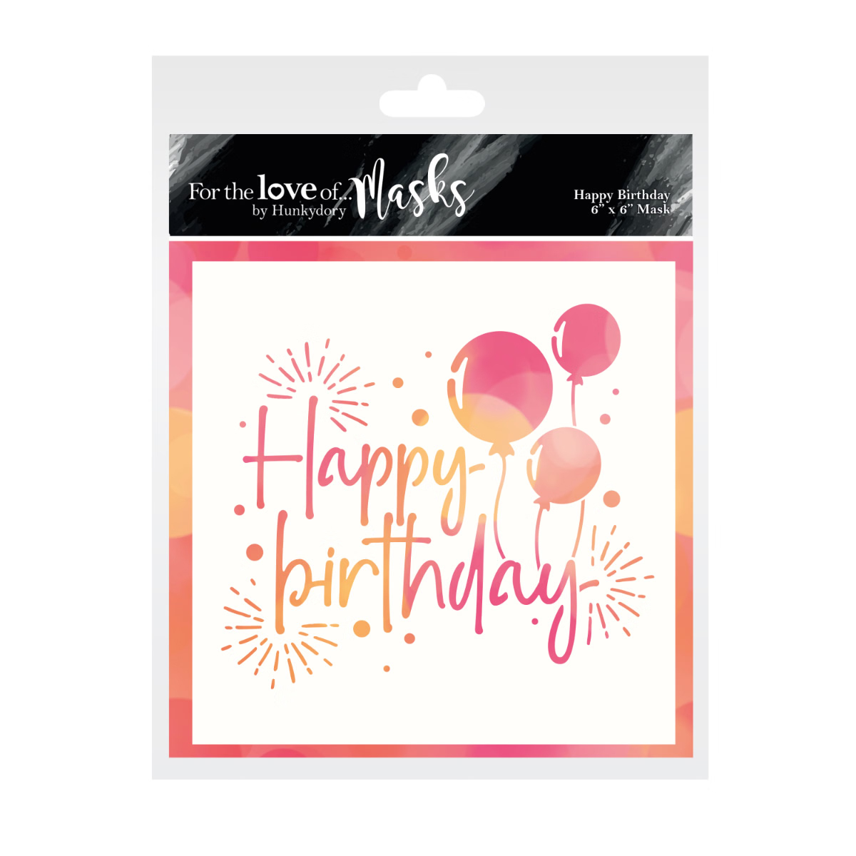 Create eye-catching centrepiece sentiment cards with the For the Love of Masks – Happy Birthday 6” x 6” mask.
