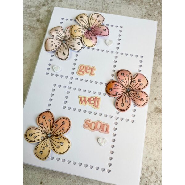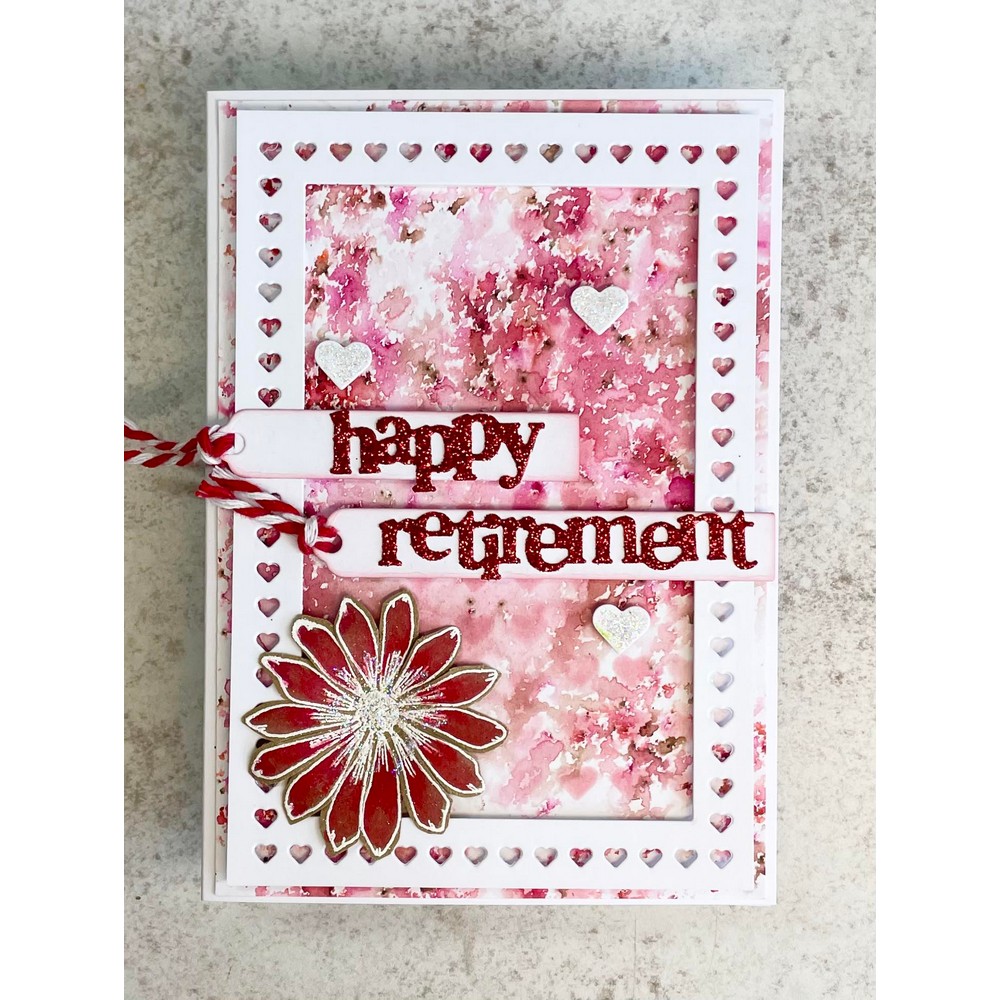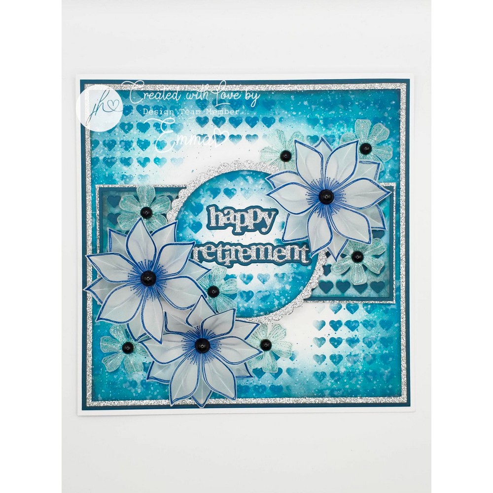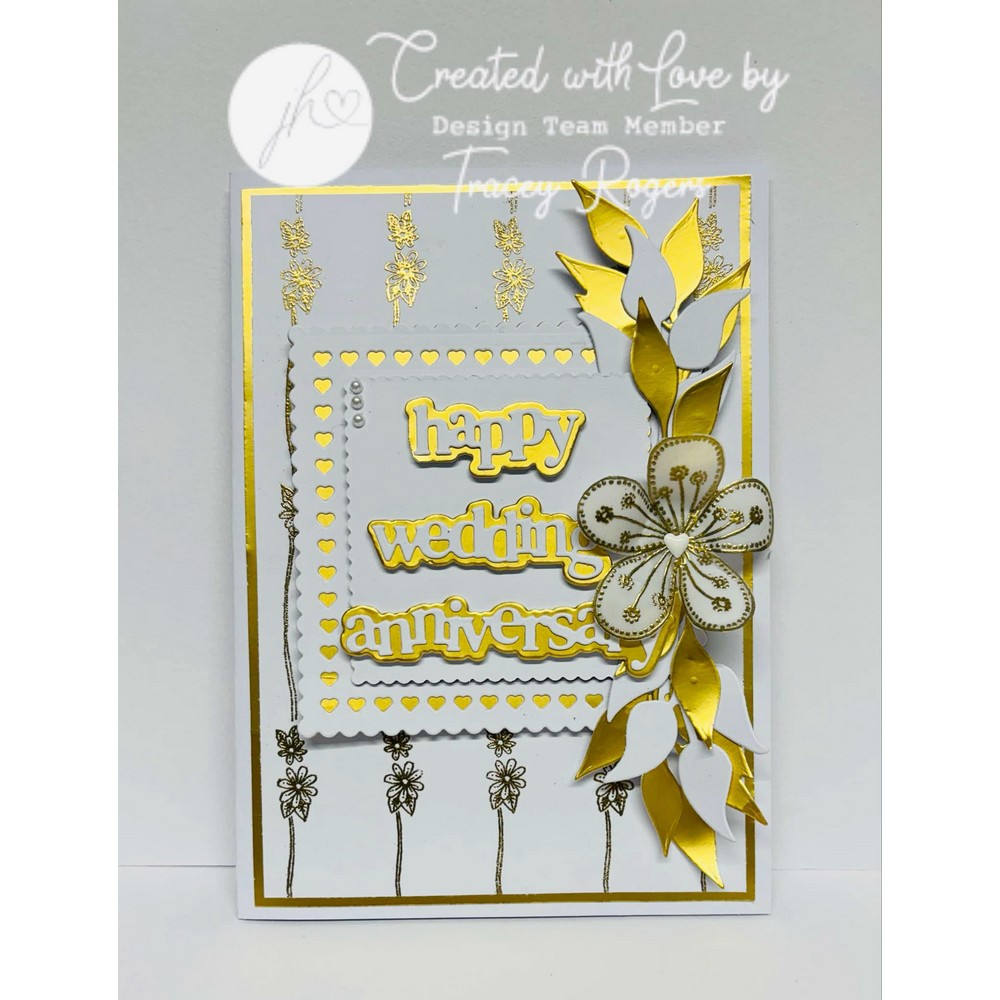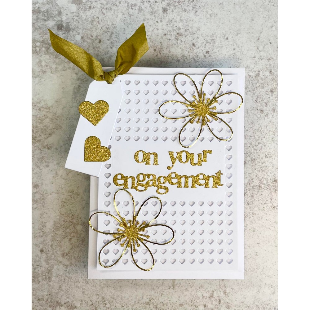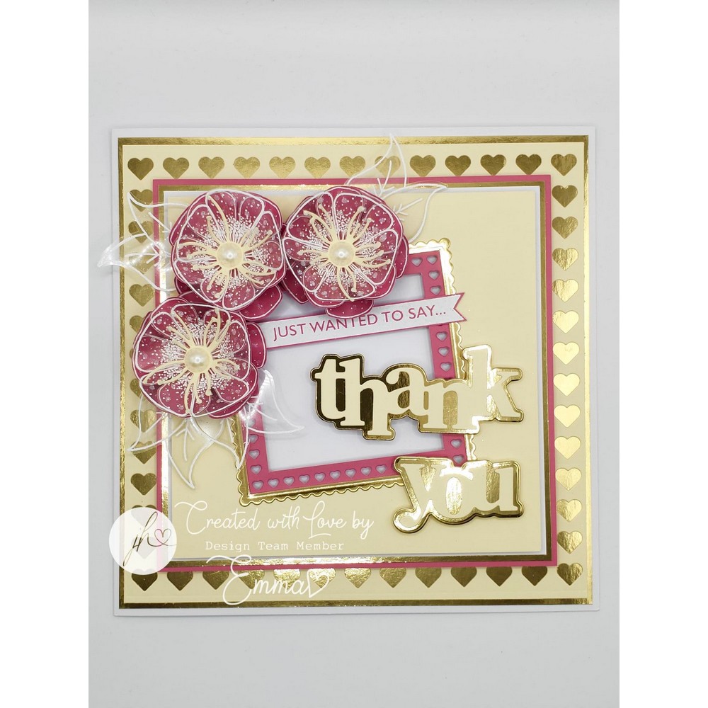 Hazel’s Heart Medley Die Set comprising: 11 individual dies, 6 layering square dies, 1 tag die and 4 heart dies. The largest heart die fits a 150mm x 150mm (6″x6″) card blank perfectly and all the aperture dies can be extended creating lots of different sizes. The dies can be using independently to create mats and layers into cards or they can be combined to create frames with heart apertures. The dies also make fabulous stencils to use for your card making.