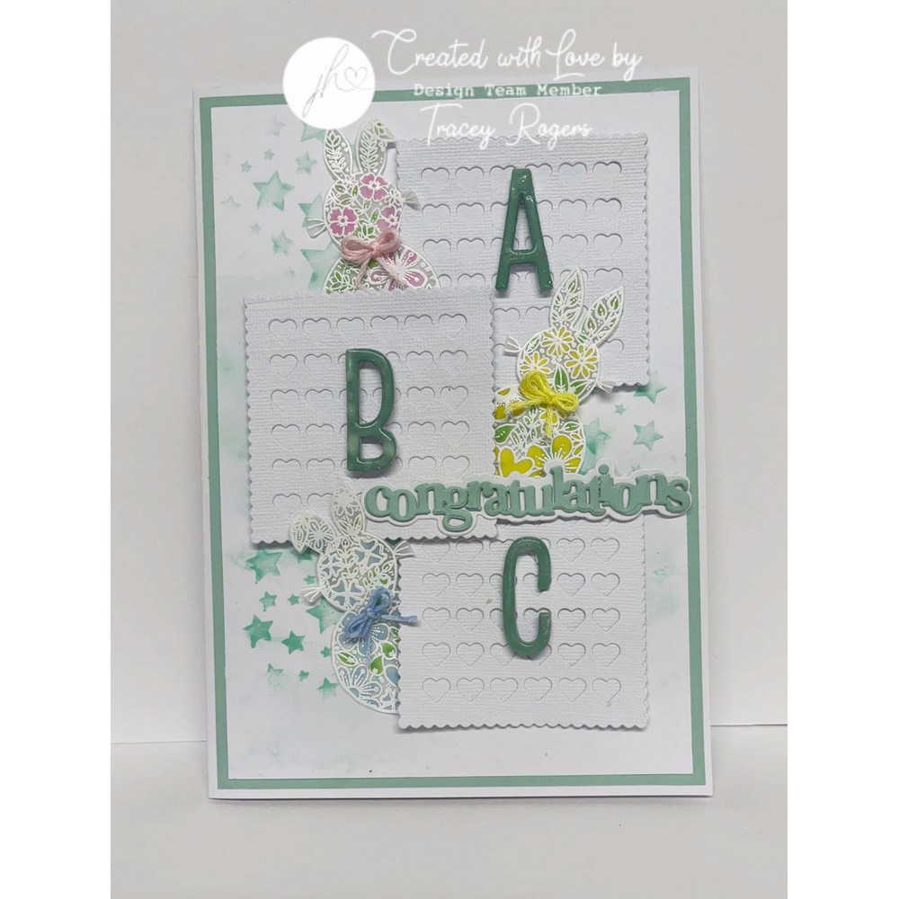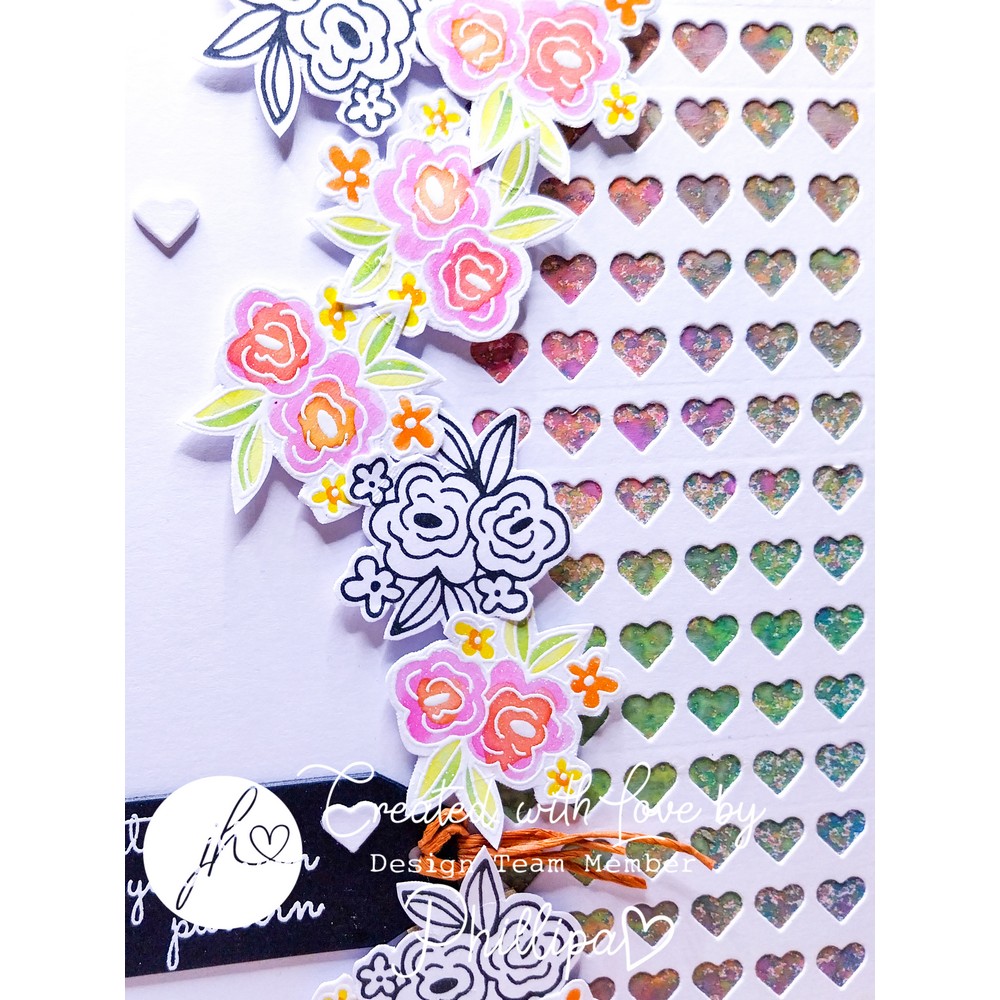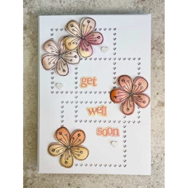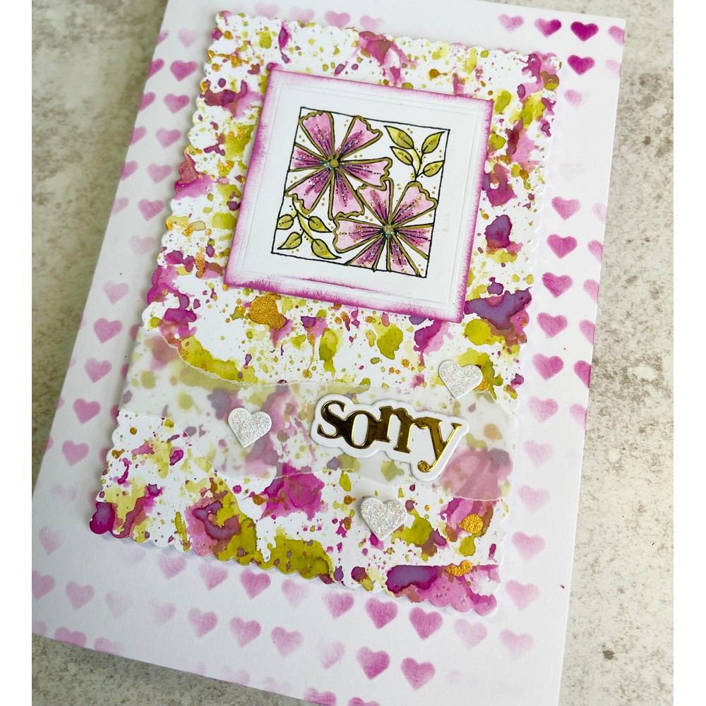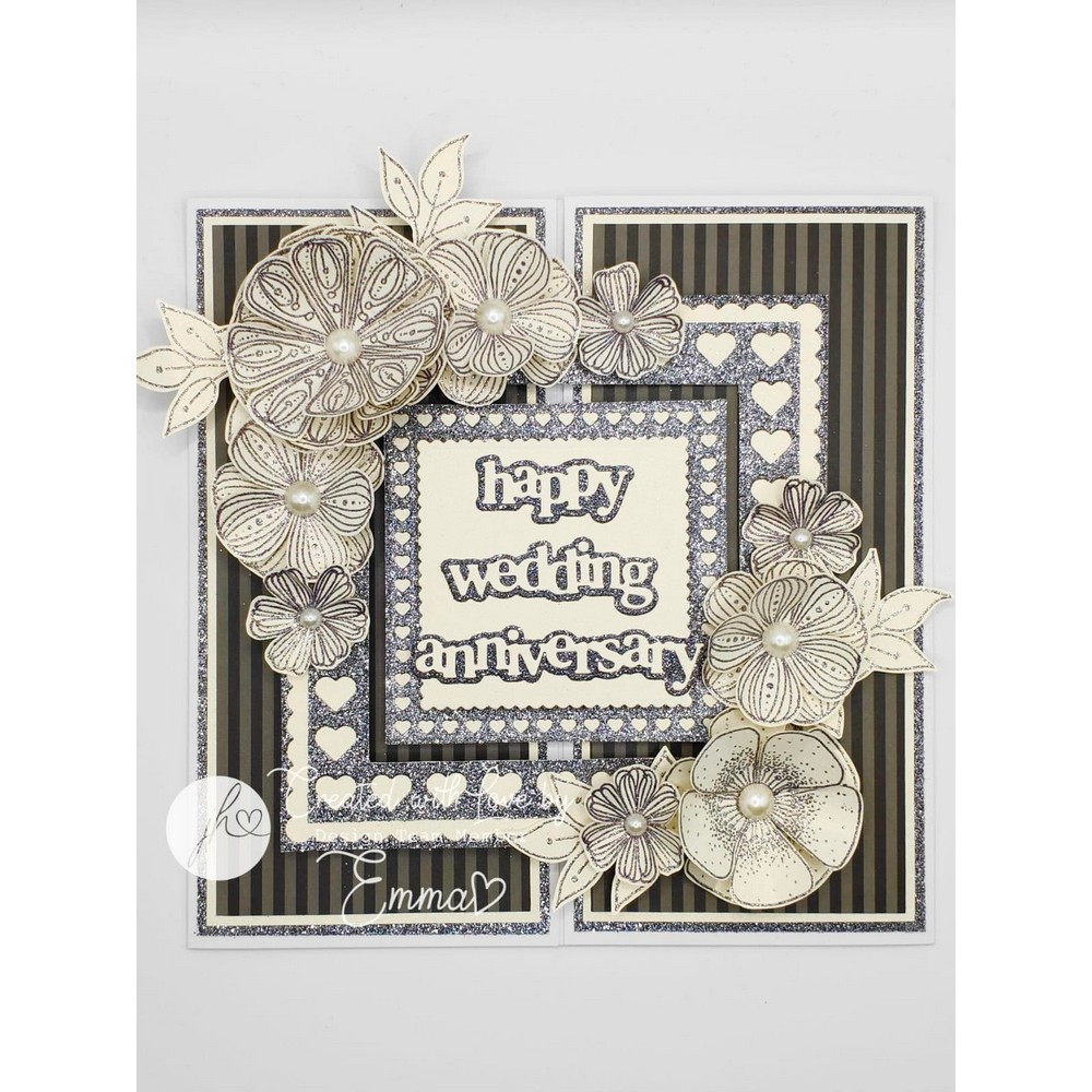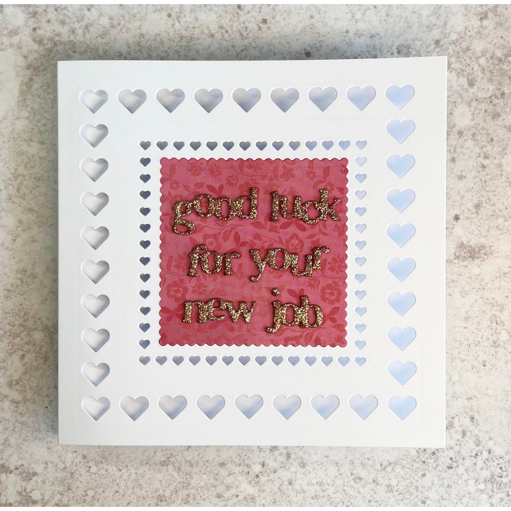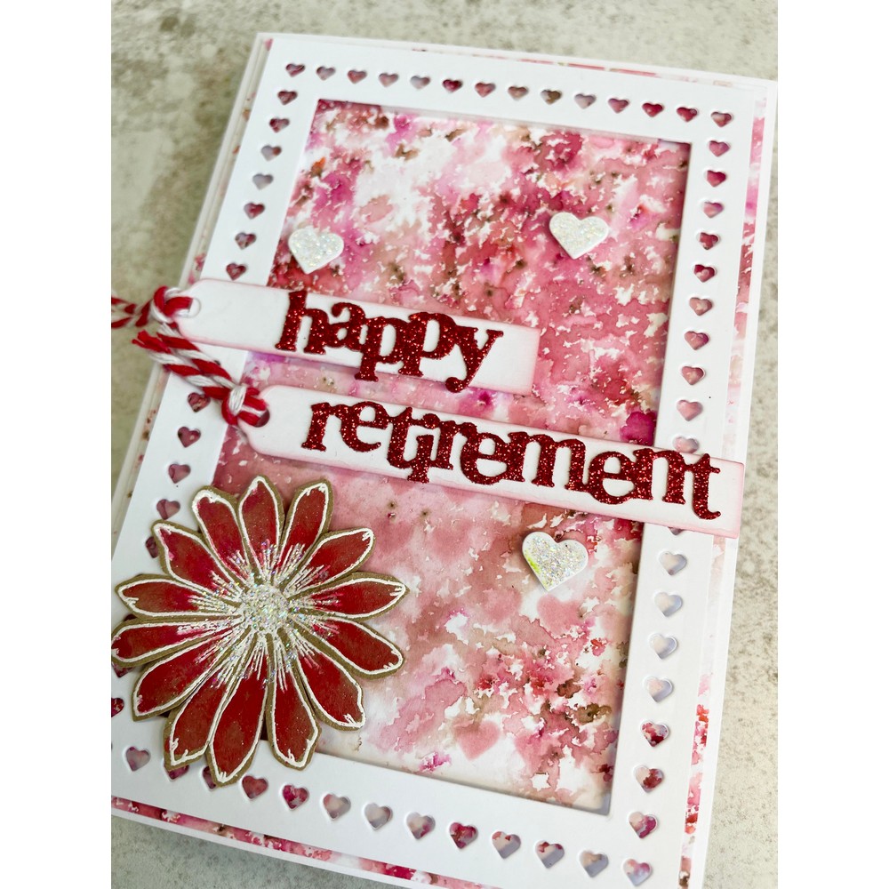 Hazel’s Heart Medley Die Set comprising: 11 individual dies, 6 layering square dies, 1 tag die and 4 heart dies. The largest heart die fits a 150mm x 150mm (6″x6″) card blank perfectly and all the aperture dies can be extended creating lots of different sizes. The dies can be using independently to create mats and layers into cards or they can be combined to create frames with heart apertures. The dies also make fabulous stencils to use for your card making.