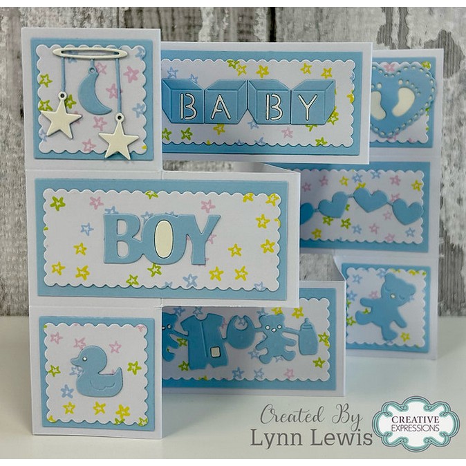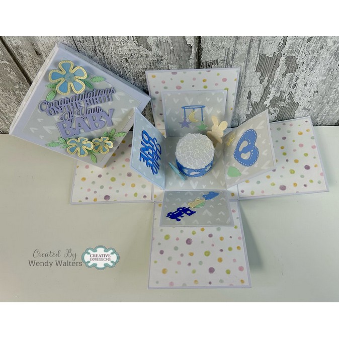 Use this die on its own for a standout centerpiece, or combine it with other Baby Collection dies such as Pebble the Bear, Special Delivery, Cherished Borders, Baby Prints, Vintage Pram, Rocking Horse, or Baby Girl Essentials for layered, professional-looking baby-themed projects.