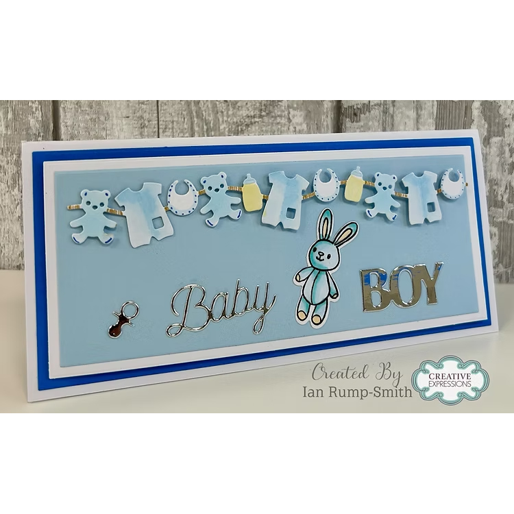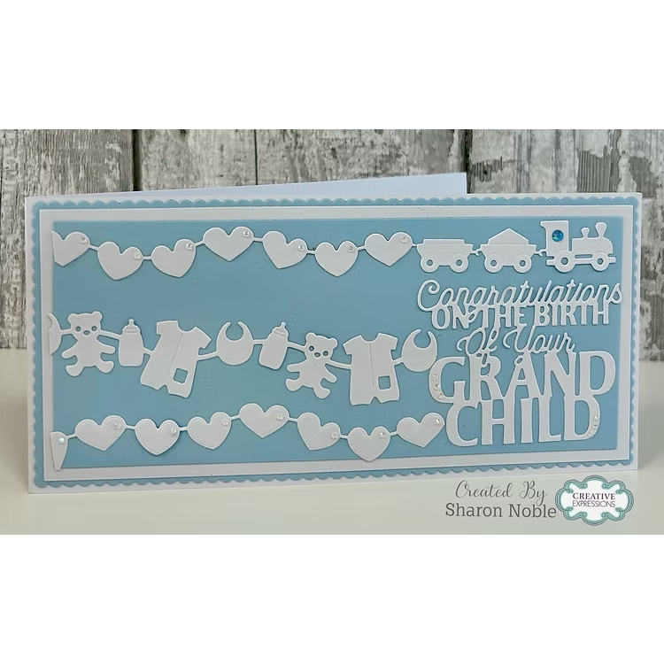 Includes playful designs like baby hands and feet, love hearts, and a bib-and-bottle/teddy outfit combo. Use them individually or combine with other dies in the Baby Collection for layered, professional-looking creations.