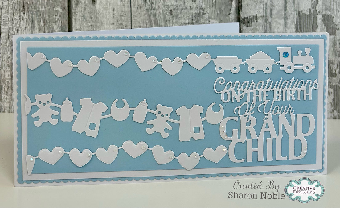 This beautifully styled die features the sentiment “Congratulations on the Birth of Your Grandchild”, perfect for adding a heartfelt message to baby-themed cards, scrapbook pages, gift tags, and keepsakes.