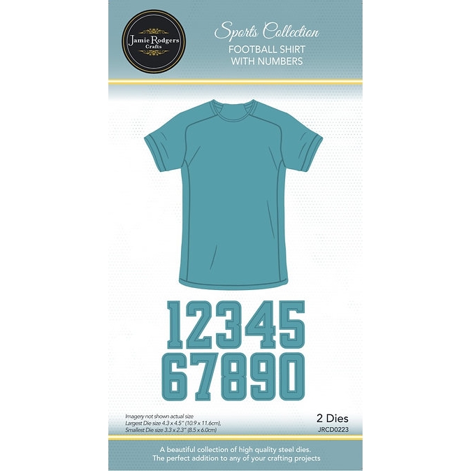 Add a personalised touch to your crafting with the Football Shirt with Numbers Die from the Sports Collection by Jamie Rodgers Crafts.