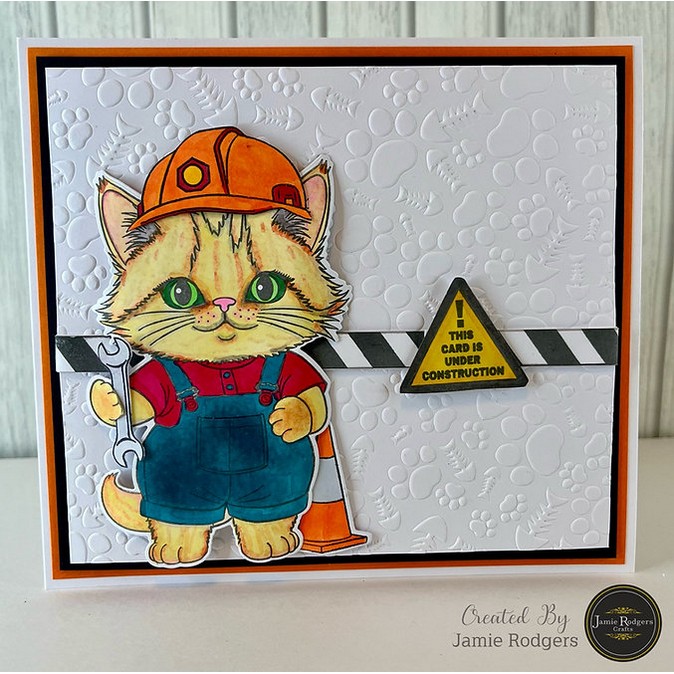 – 5 Dies and 8 Stamps (including hazard signs, traffic cones, workmans’ hat, spanner and road barrier)