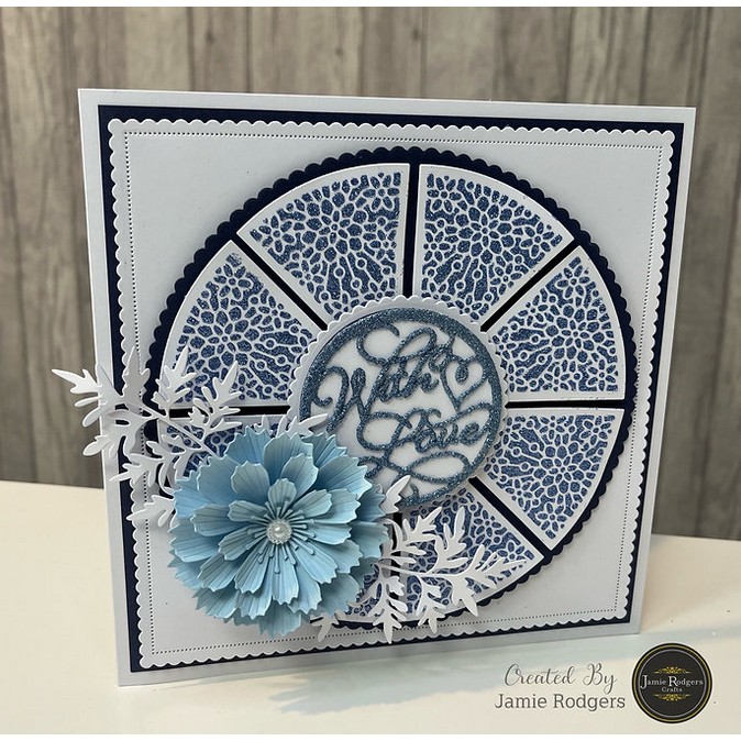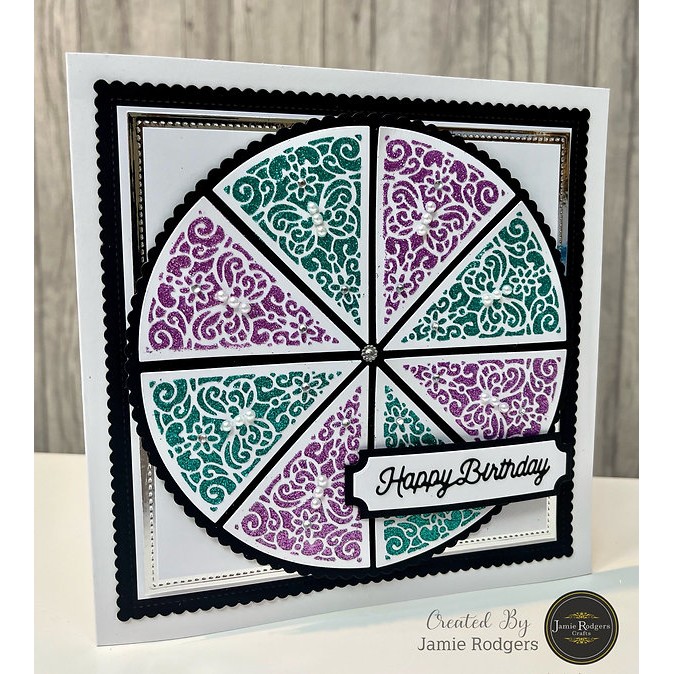 This stencil also co-ordinates with Jamie Rodgers Kaleidoscope Segments Die (jrdc0038) available to purchase separately