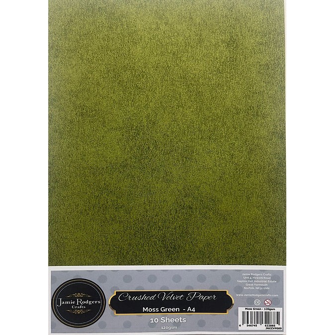 Jamie Rodgers Crafts – Moss Green – Crushed Velvet Paper 120gsm – 10 Pack