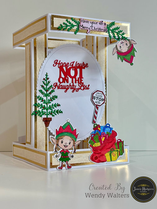 – 5 Dies and 8 Stamps (including Mrs Christmas and Elves, Present, Sentiment Sign Post and 3 Sentiments)