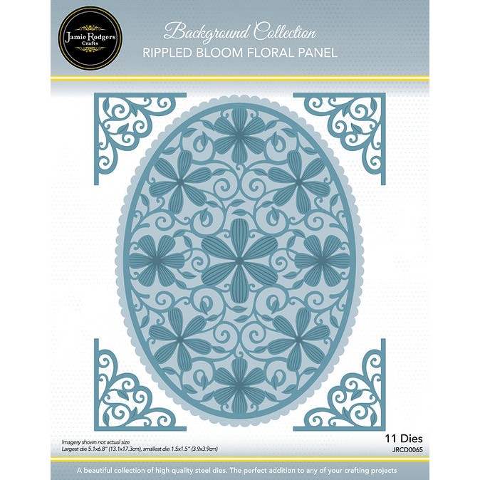 The Rippled Bloom Floral Panel Die Set (jrcd0065) is part of Jamie Rodgers Crafts Background Collection, and launched together with the Floral Blooms Collection.
