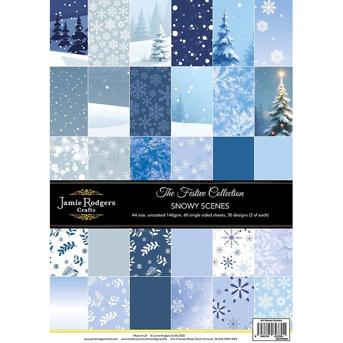 Jamie Rodgers Crafts – Snowy Scenes Paper Pad – 60 Sheets A4 – 140gsm – Single Sided
