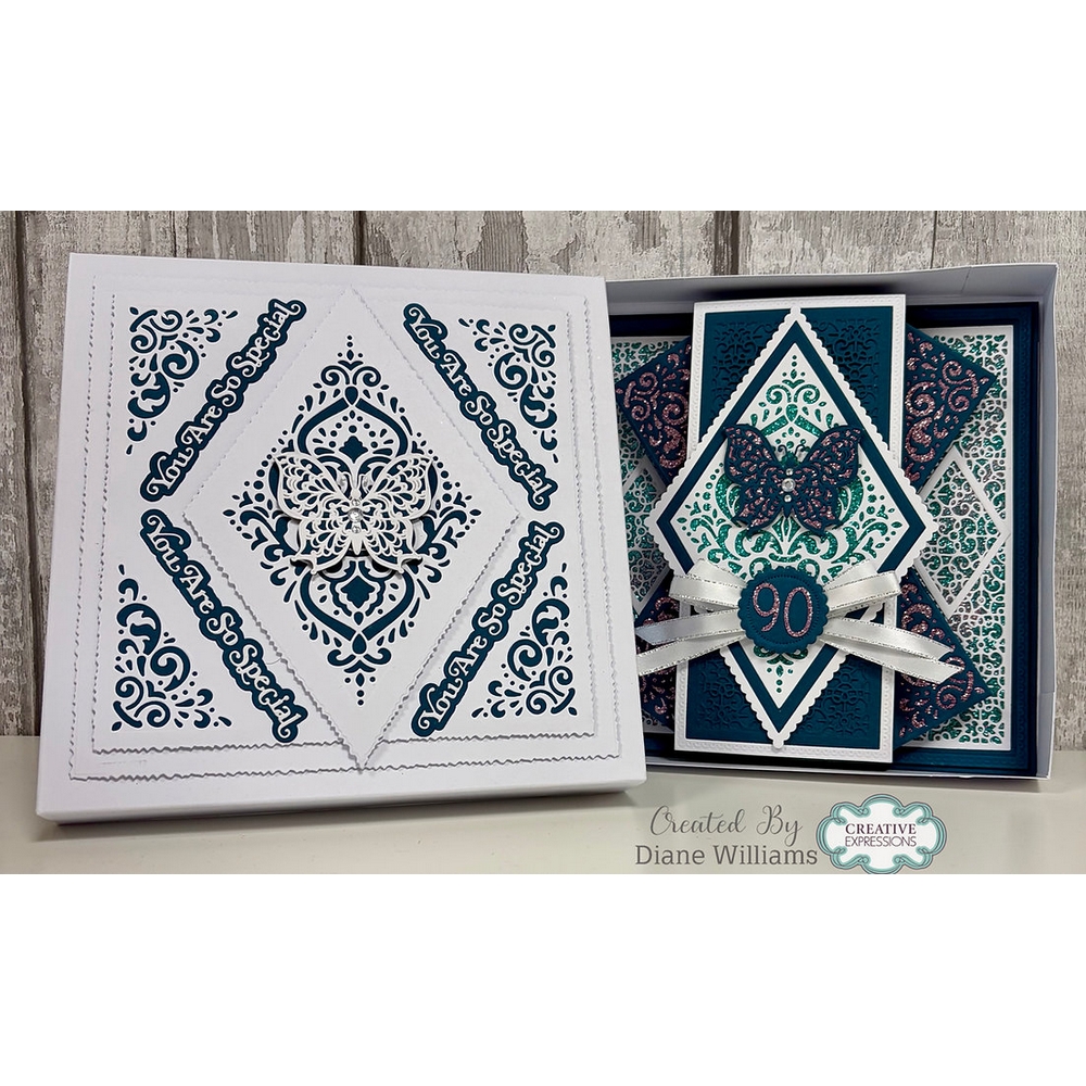 Introduce timeless elegance to your crafting assortment with the Damask Diamonds Die Set. Part of The Diamond Collection by Jamie Rodgers Crafts, this 10-die set showcases ornate damask-inspired patterns framed within classic diamond silhouettes.