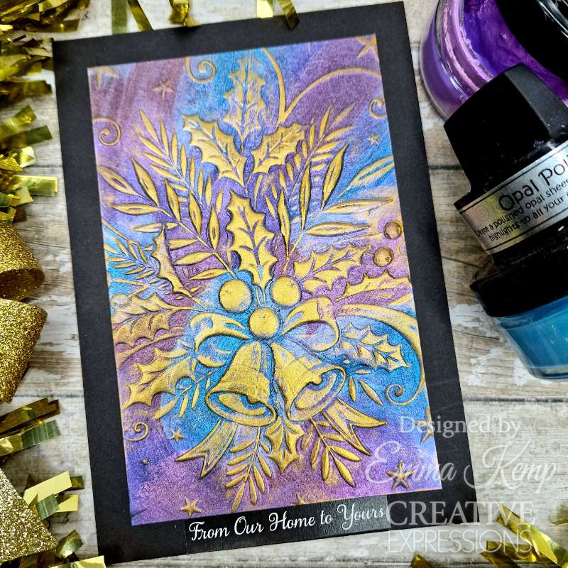This gorgeous 5 in x 7 in Jingle Bells embossing folder is compatible with leading die cutting machines. This folder will give a deep impression and create a detailed design with a sculpted emboss effect on paper, cardstock vellum, metal, foil, and other surfaces. This embossing folder can be used with Cosmic Shimmer Polishes, Glitter Kiss, Colour Cloud Blending Ink, and other mixed media products. For best results, mist your paper with water before running it through your machine. This folder can be used for cards, scrapbook pages, and other paper crafting projects. Co-ordinates with CEST170 Jingle Bells Companion Colouring Stencil. Made In China. 1 Embossing Folder. Size 5 in x 7 in (12.7 cm x 17.8 cm).
