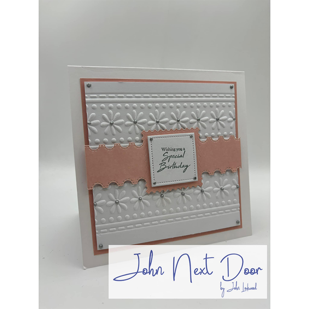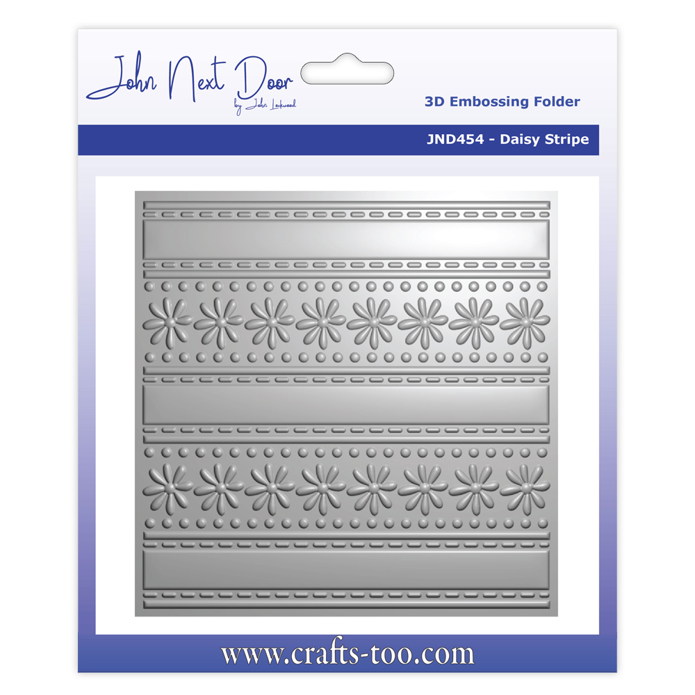 The John Next Door Daisy Stripe is a 3D embossing folder that adds deeper impressions compared to your standard embossing folders, perfect for adding texture and dimension to any of your paper craft projects.