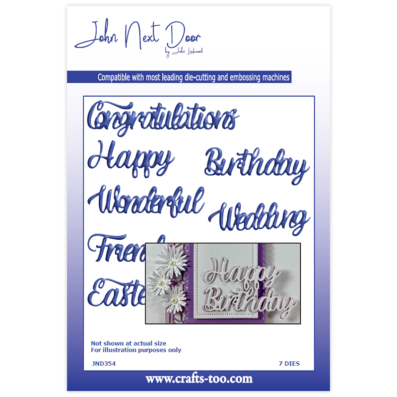 The John Next Door Birthday Sayings die set consists of 7 high quality dies designed to make embellishments to your design.