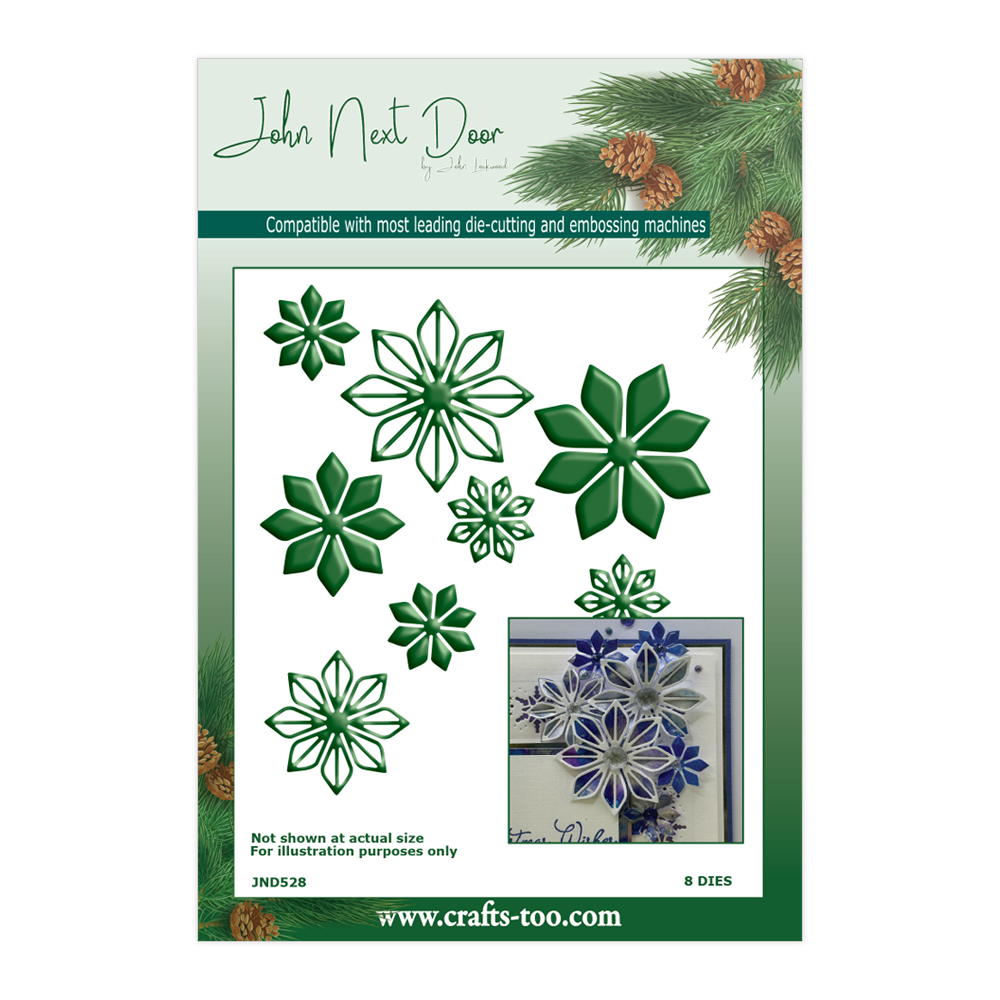 The John Next Door Christmas Snow Crystal Flower consist of 8 high quality dies designed to make embellishments to your designs.
