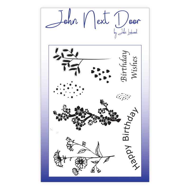 The John Next Door Spring Flowers attached to an A6 sheet, each stamp is manufactured from a high quality photopolymer, this means that the stamps are clear and that you get a high quality image every time you stamp.