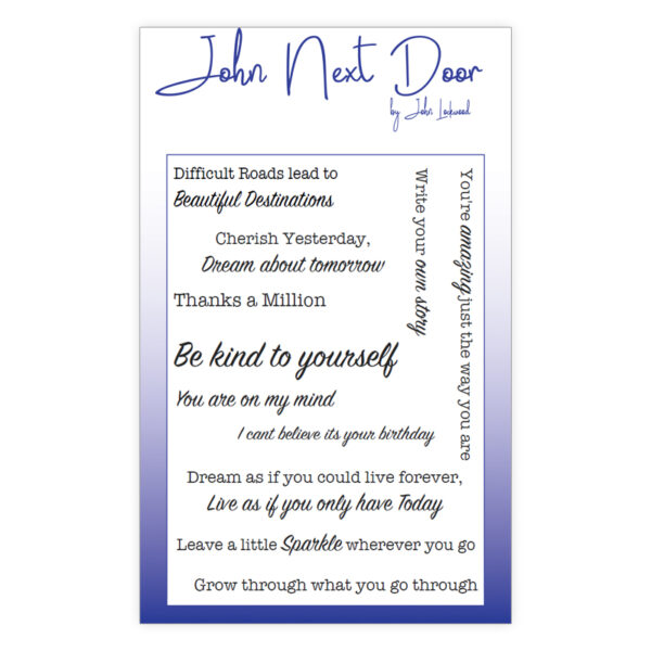 The John Next Door Inspiring Stamp is manufactured from a high quality photopolymer. This means that the stamps are clear and that you get a high quality image every time you stamp.