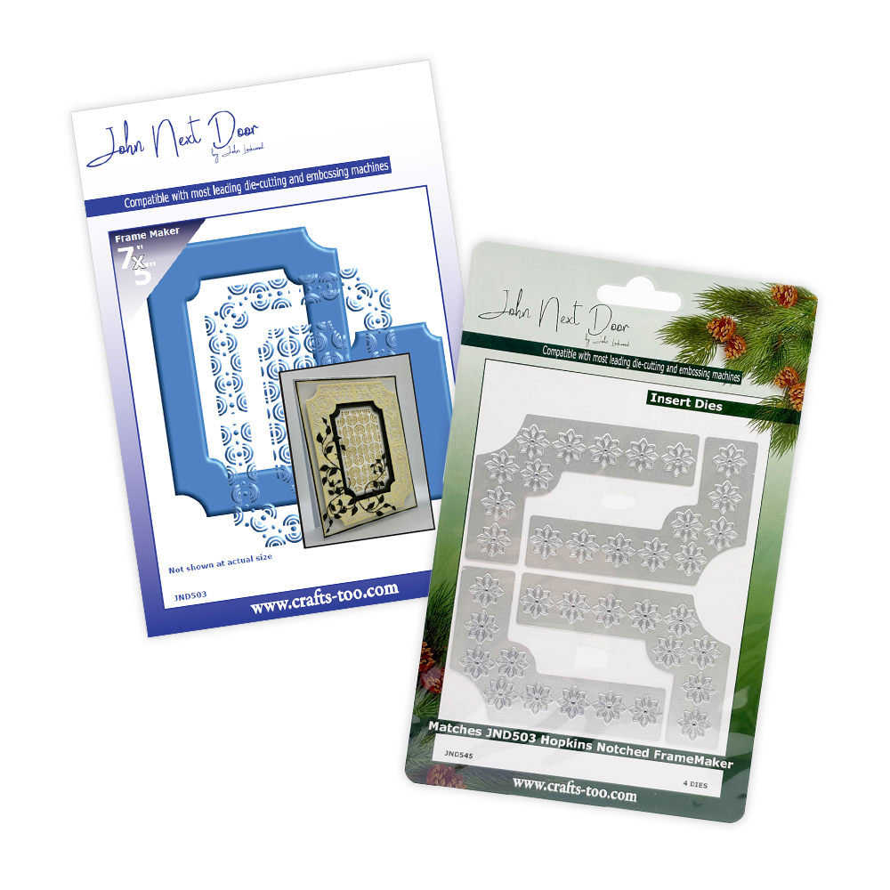 Create elegant, coordinated designs with this versatile pairing from John Next Door. The Hopkins Notched FrameMaker helps you craft perfectly sized custom frames for cards, journals, and decorative makes. Paired with the Crystal Flower Insert, you can add a refined festive flourish that integrates seamlessly with the FrameMaker.