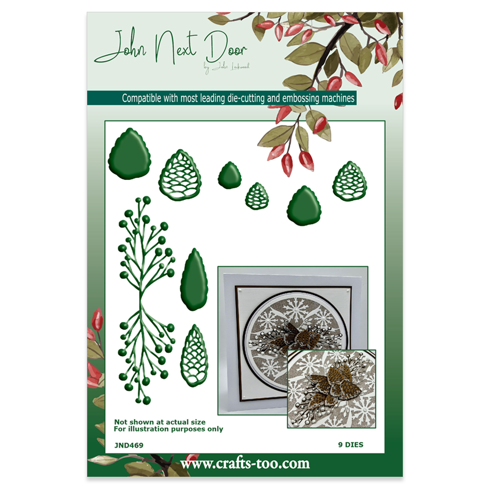 The John Next Door Deco Pinecones consists of 9 high quality die designed to make embellishments to your designs.