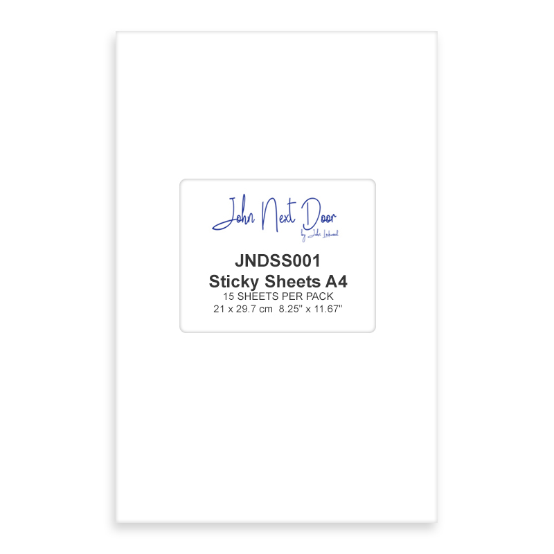 The John Next Door Sticky Sheets consist of 10 A4 double sided adhesive sheets