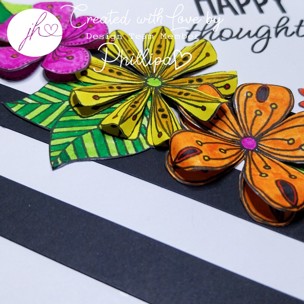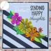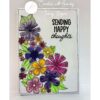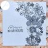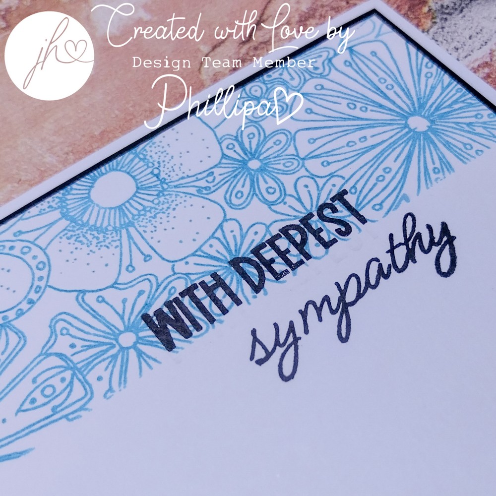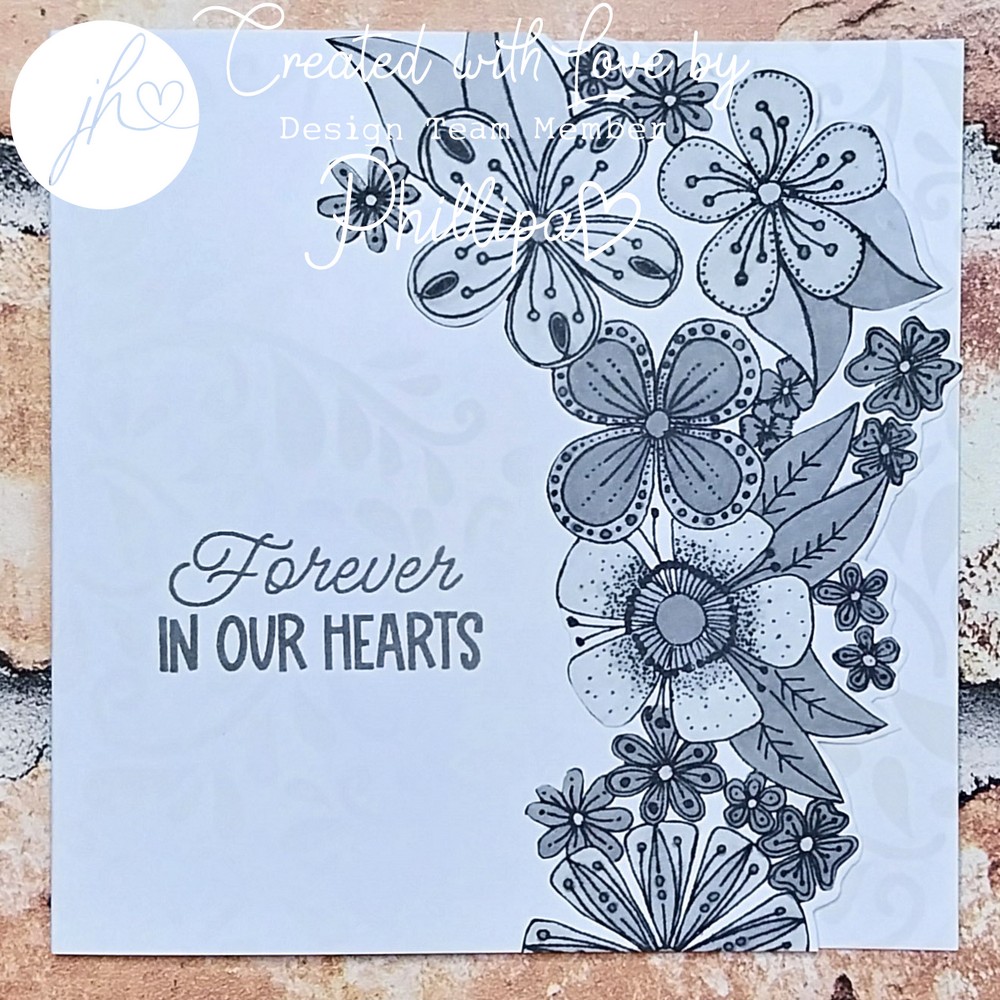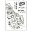 4 individual stamps featuring a beautiful large contemporary hand drawn florals arrangement in Julie’s signature style with 3 sentiments featuring gorgeous hand picked fonts. Sentiments include: Sending Happy Thoughts, Forever in our hearts and With deepest sympathy.