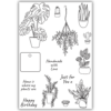 My Indoor Garden Stamp Set – 14 individual stamps comprising: a mix of 6 houseplants in different shaped pots and one in a hanging basket and 3 cactus plants. There is a square tag to stamp the 4 sentiments into, sentiments are: Home is where my plants are, Happy Birthday, Just for you and Handmade with love all in a lovely, clean handwritten font.