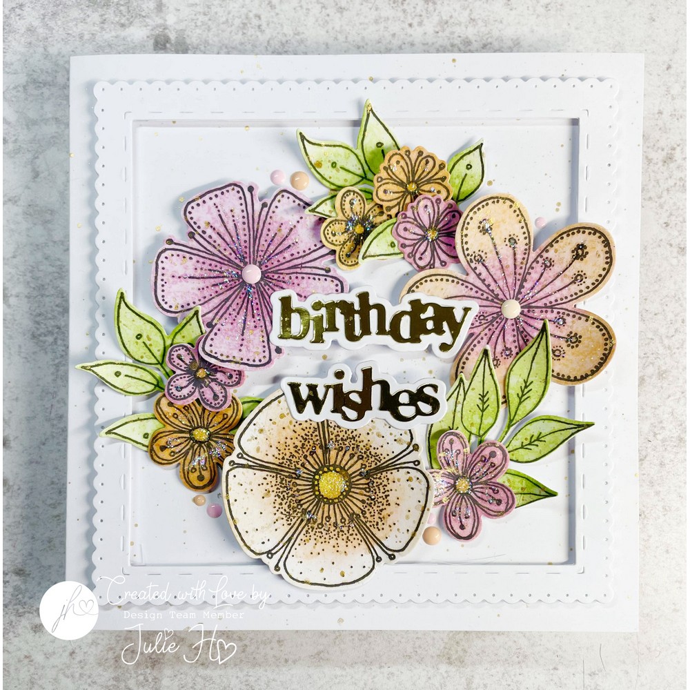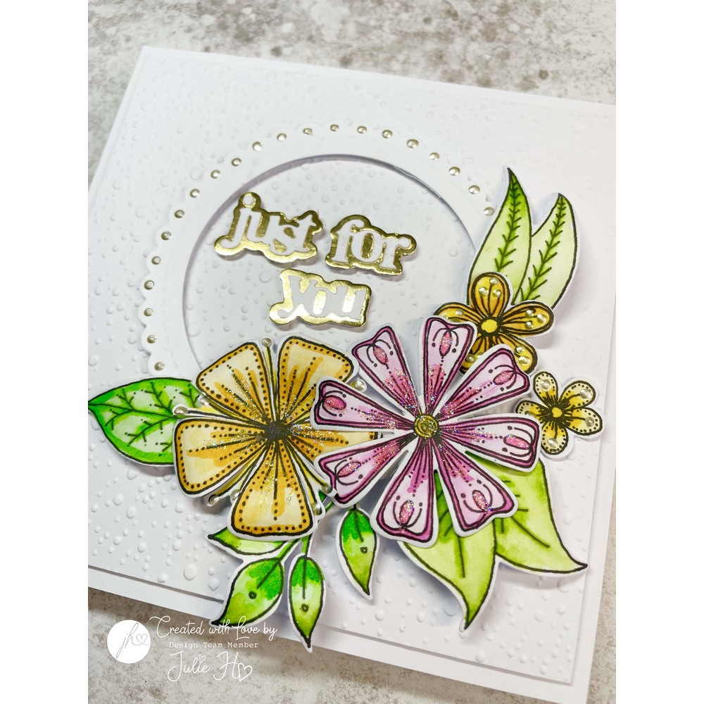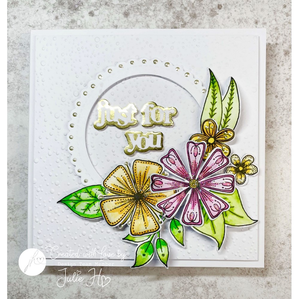 11 individual stamps featuring beautiful contemporary hand drawn blooms in Julie’s signature style.