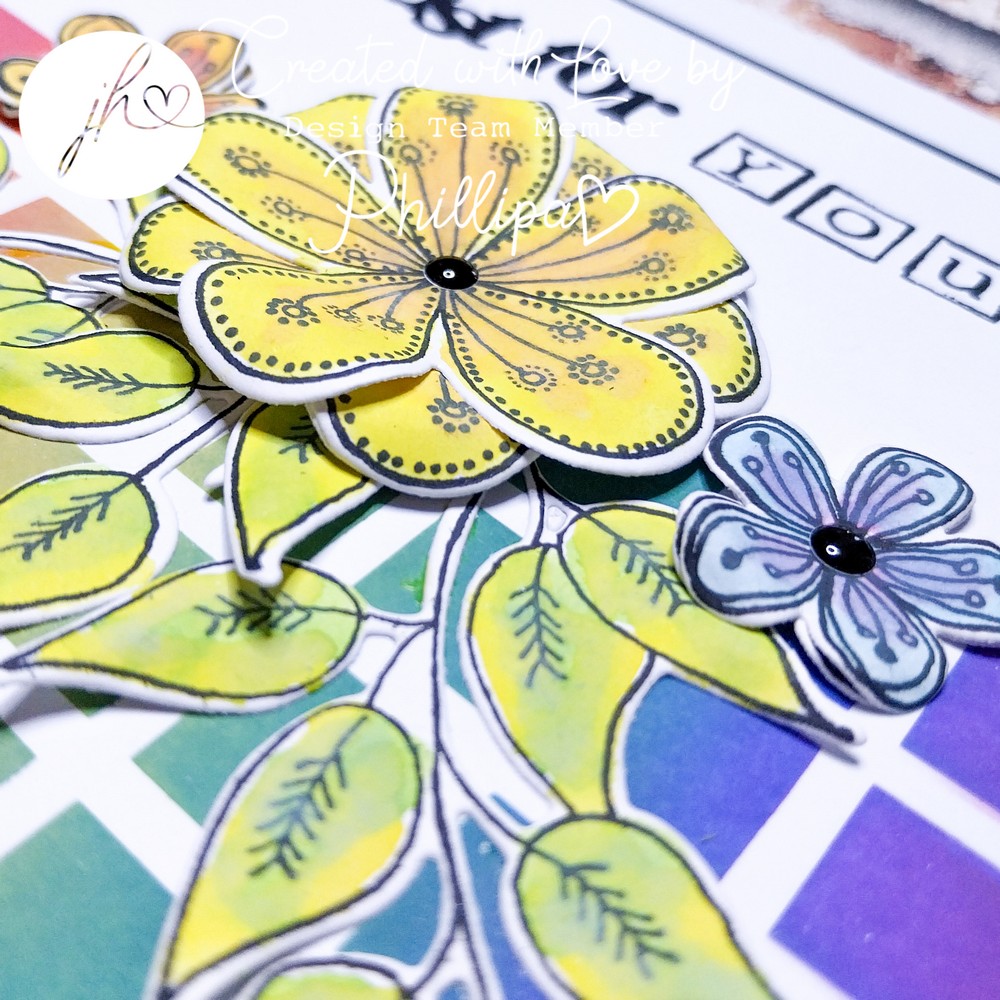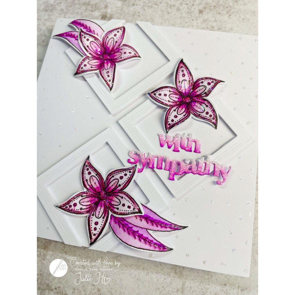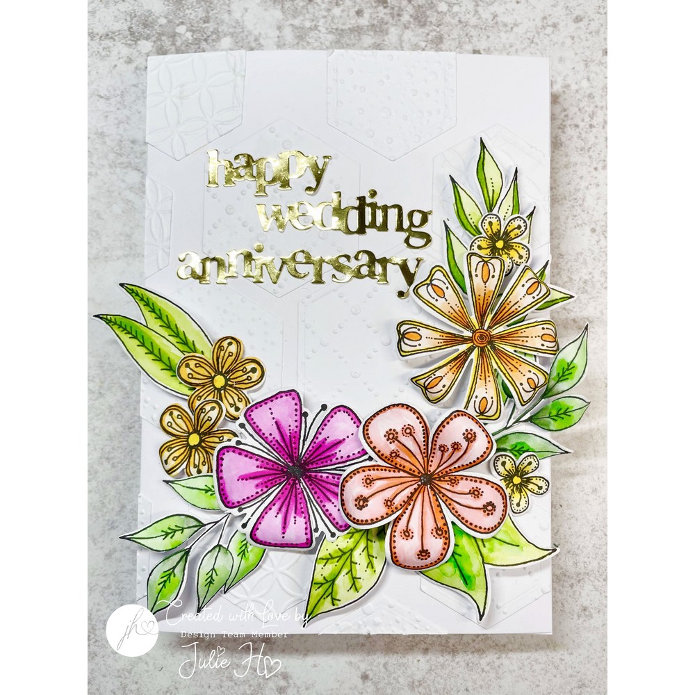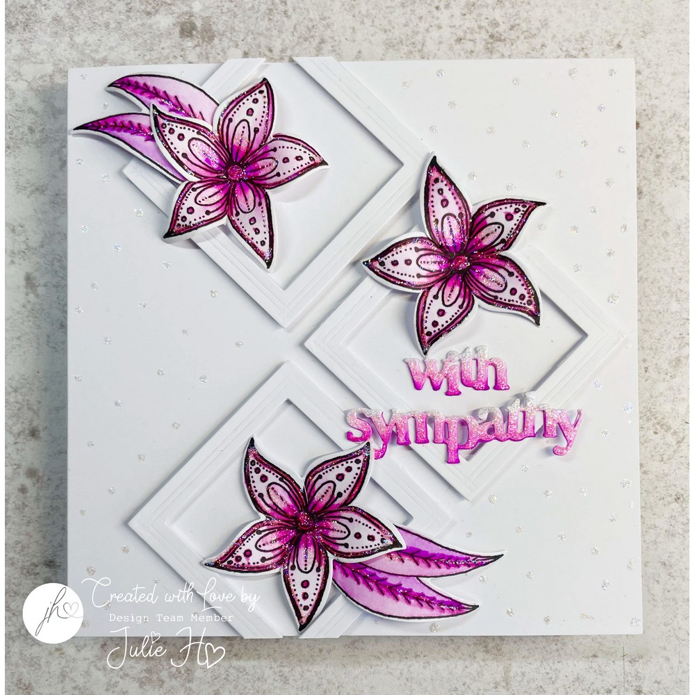 11 individual stamps featuring beautiful contemporary hand drawn blooms in Julie’s signature style.