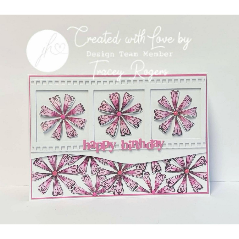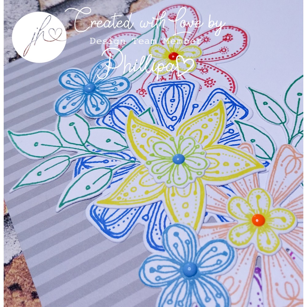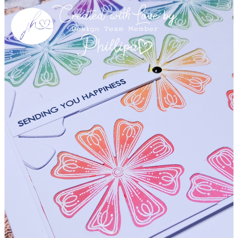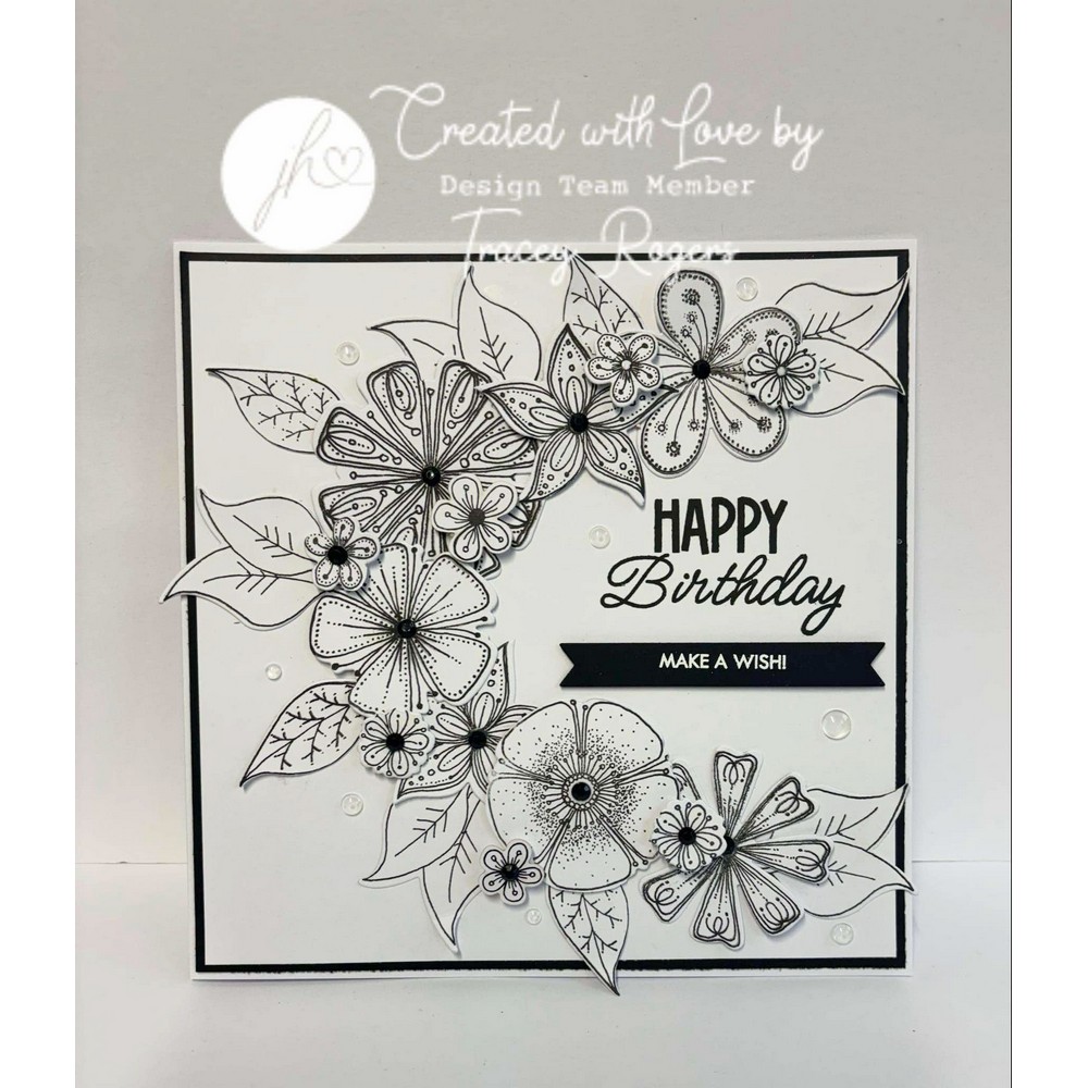 Different styles and sizes of blooms perfect for all occasions. There is a co-ordinating Die Set available, JHD-CUT-1039 Perfectly Pretty Blooms Die Set. Stamp and die cut these flowers to your hearts content