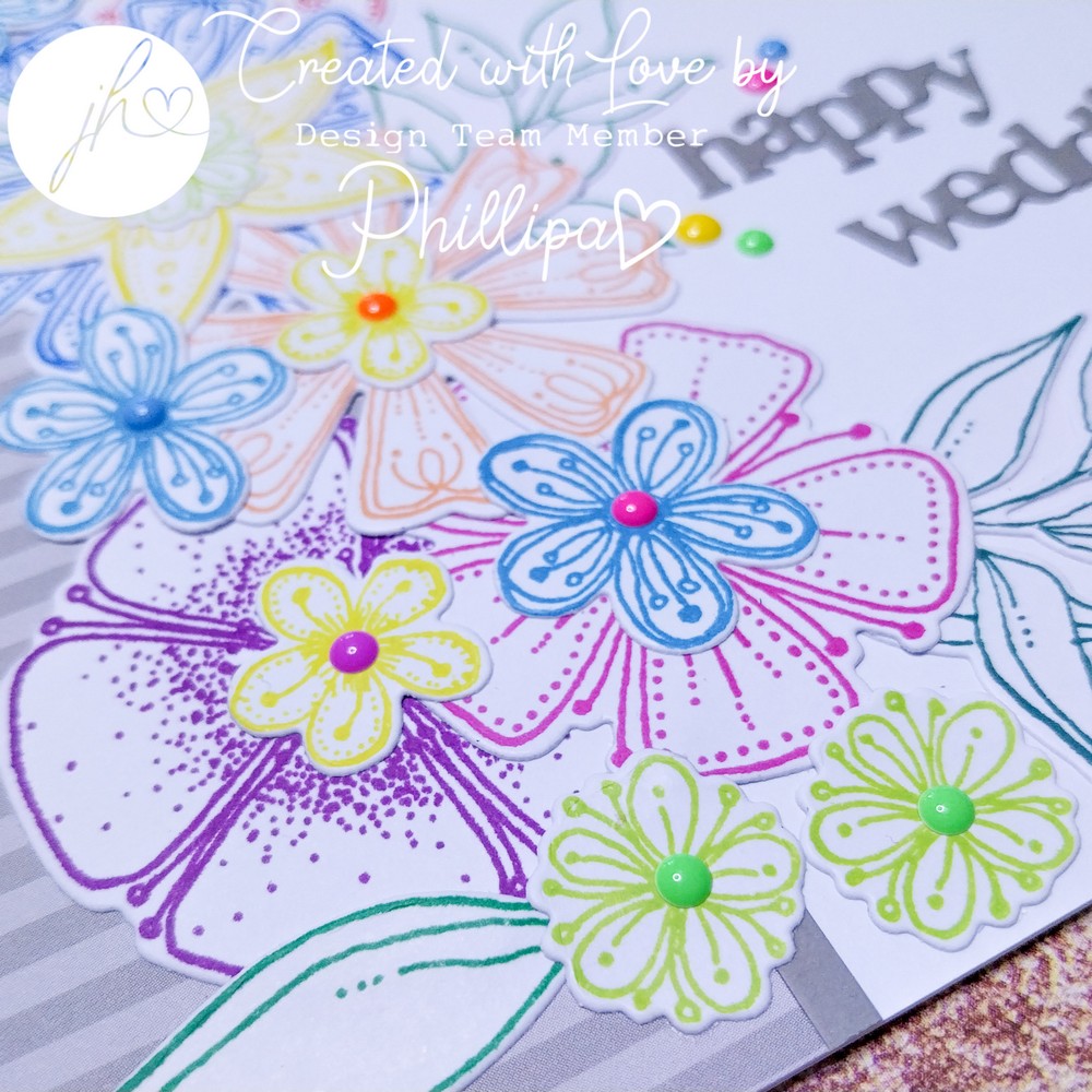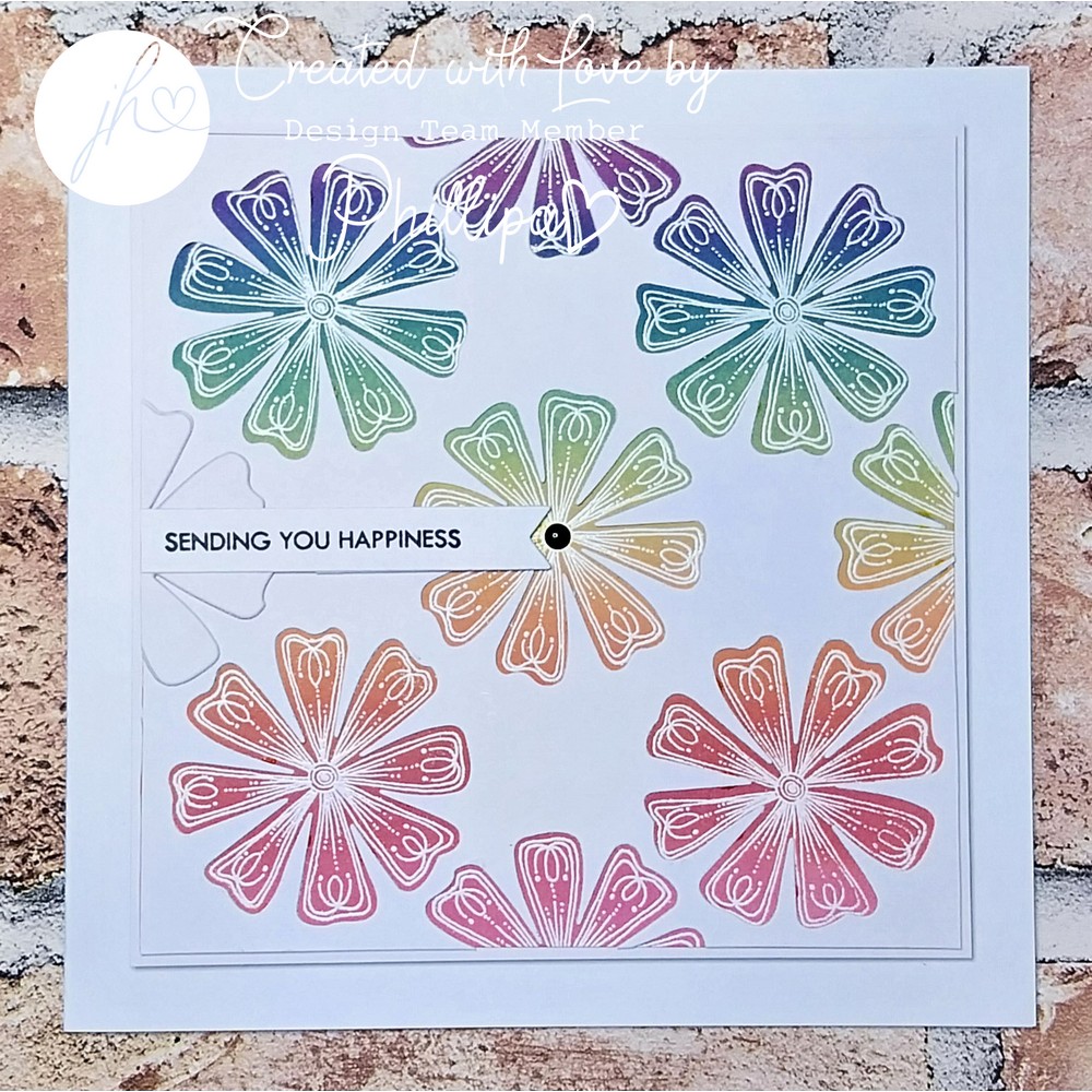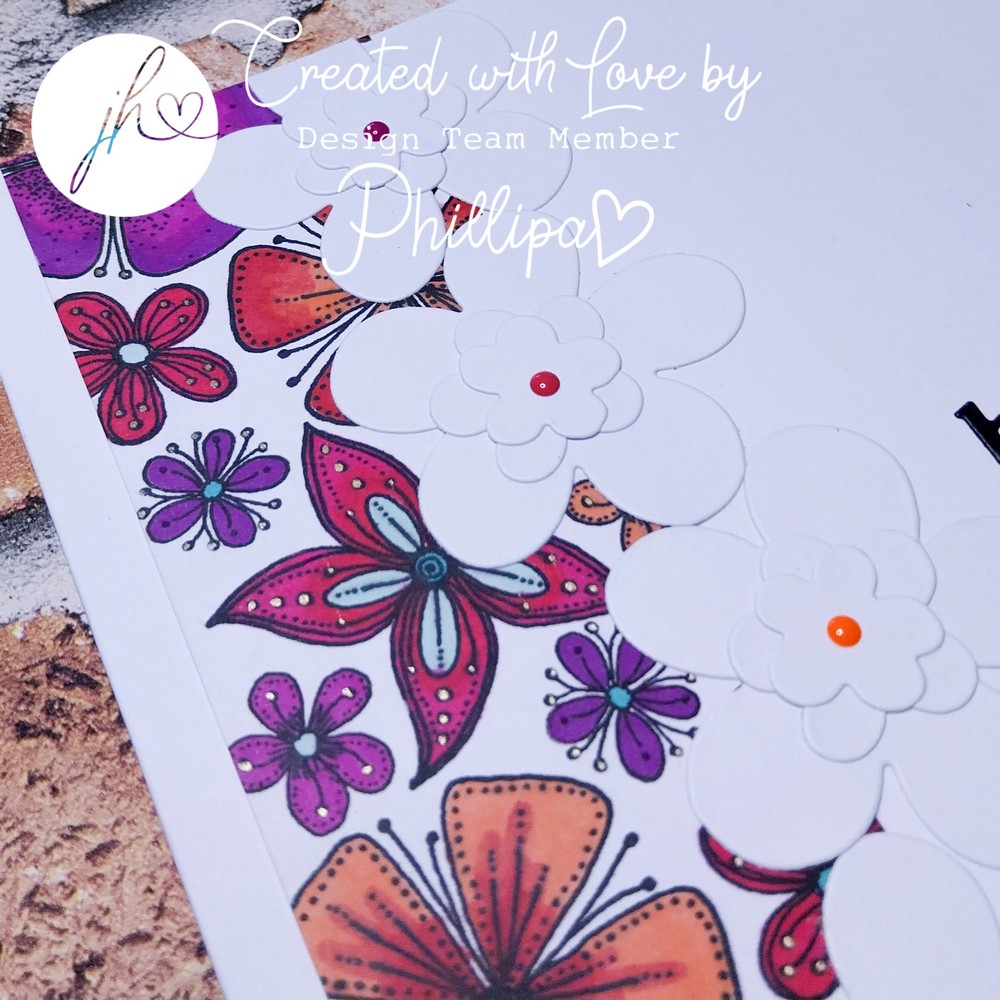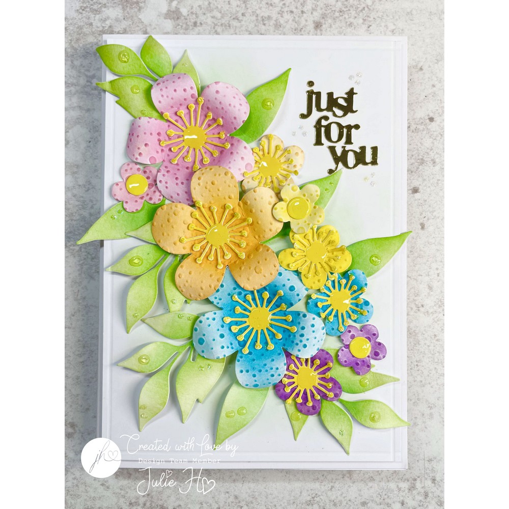 Different styles and sizes of blooms perfect for all occasions. There is a co-ordinating Die Set available, JHD-CUT-1039 Perfectly Pretty Blooms Die Set. Stamp and die cut these flowers to your hearts content