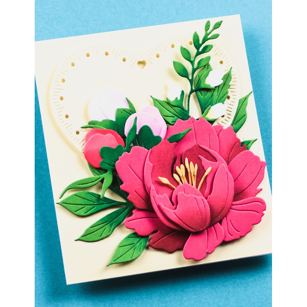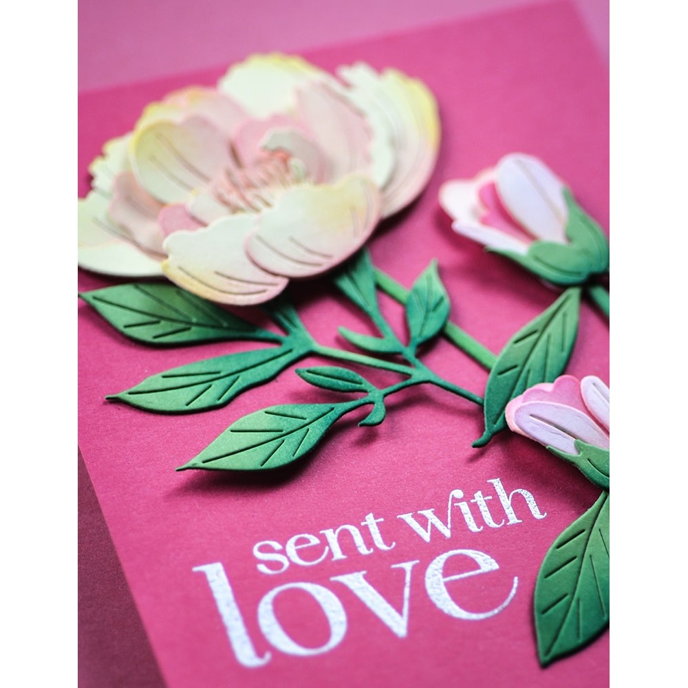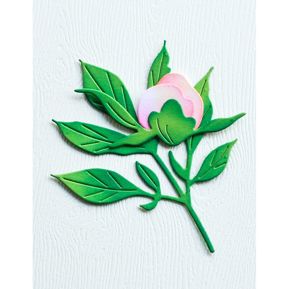 5.6 x 2.5 centimetres bud assembled, 6.1 x 7.1 centimetres leaves