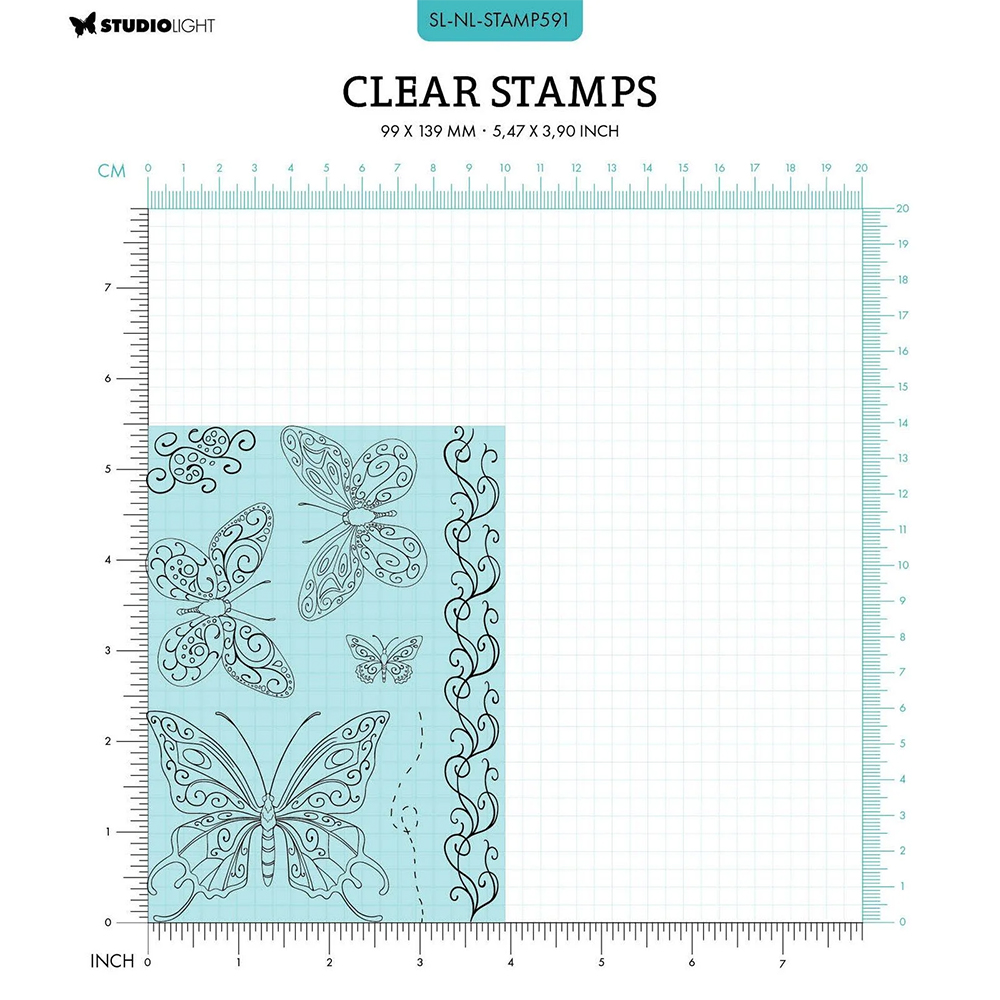 Clear stamp by Studio Light includes butterfly elements plus some extra elements perfect for finishing off your projects. They can be used for scrapbooking, journaling and card making. Part of the Nature Lover Collection.