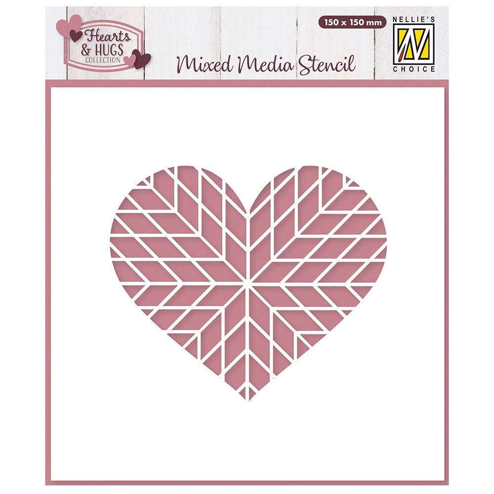 Create unique geo heart designs on your Valentine’s Day cards, scrapbooks, and journals with this stencil from Nellie’s Choice. A stencil is a cut-out shape that allows you to quickly create beautiful patterns and designs using paint, markers, pens, ink, or other materials. Perfect for scrapbooking, journaling, and designing birthday cards or invitations.