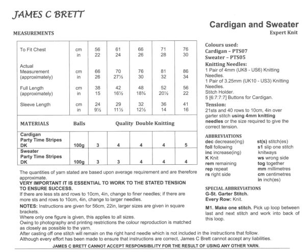 Party Time Stripes DK Pattern JB822 Cardigan and Sweater