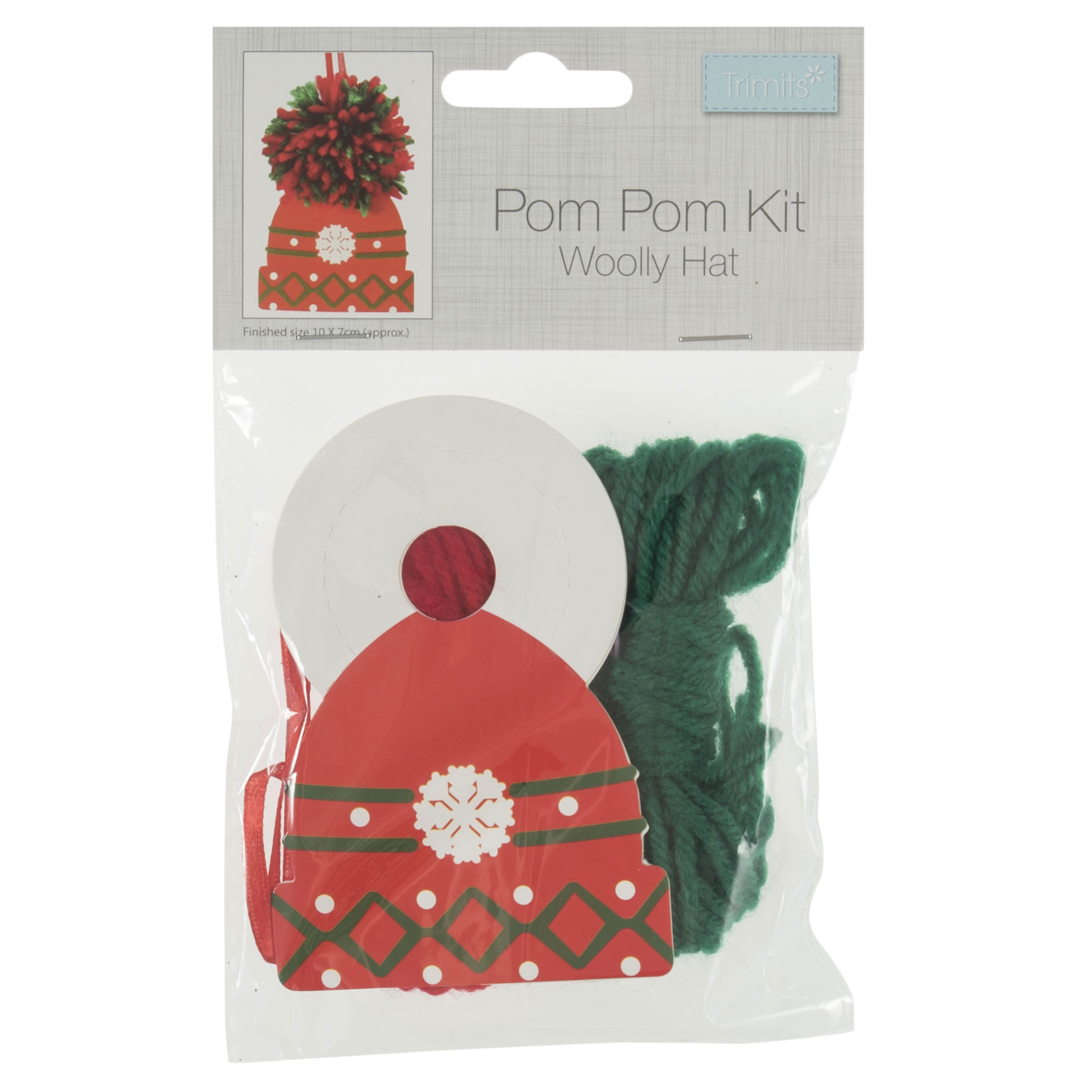 These pom pom kits are simple fun Christmas decorations to hang on your Christmas tree. Approximate finished size: (w/h) 7 x 10cm. Do not wash. Composition: yarn is acrylic; ribbon is polyester, card is paper.