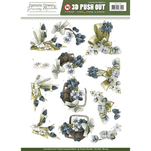 Die-cut decoupage sheet with Toppers in Precious Marieke Fantastic Flowers Collection theme. Toppers can be pushed-out of the sheet so there is no need for scissors. Especially convenient for those who have trouble cutting small details.