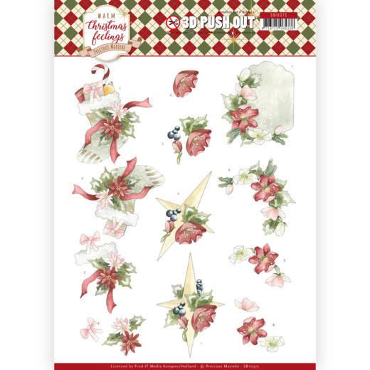 Precious Marieke 3D Push Out Warm Christmas Feelings – Red Christmas Ornaments
