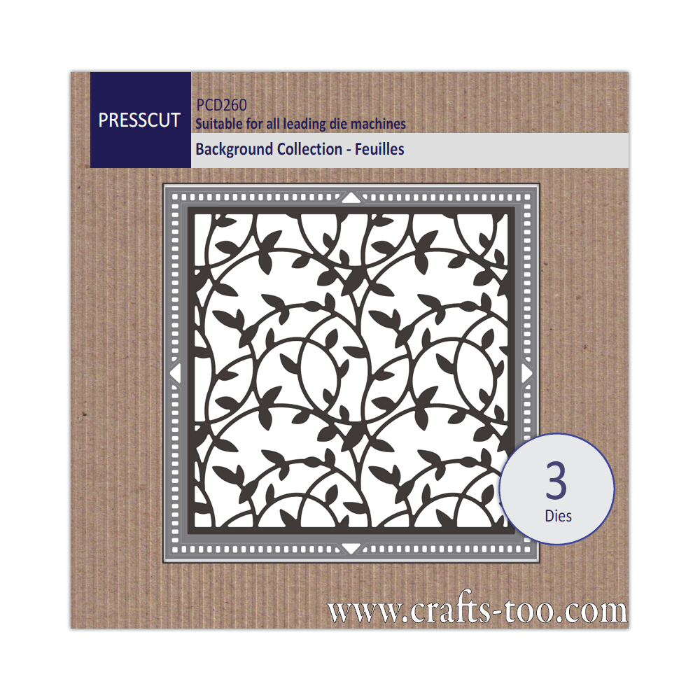 The Presscut Background Collection Feuilles die set consists of 3 high quality cutting dies in total that are made out of steel with a teflon coating for ease of use.