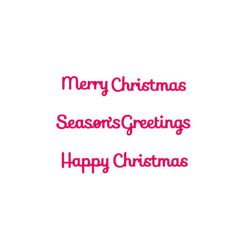 Presscut Christmas Sentiment Die Set – includes Merry Christmas, Season’s Greetings, and Happy Christmas designs. Ideal for holiday crafts.