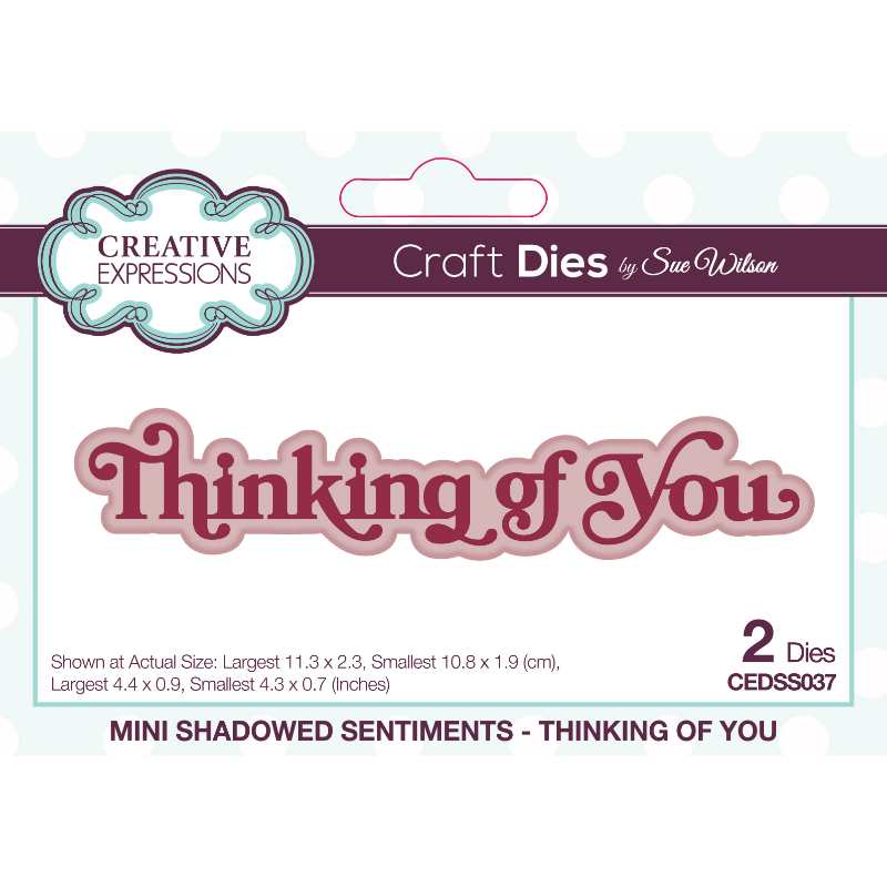 The Mini Shadowed Sentiments Thinking Of You Craft Die from Sue’s collection is perfect to add the finishing touch to all your cards and paper craft projects.