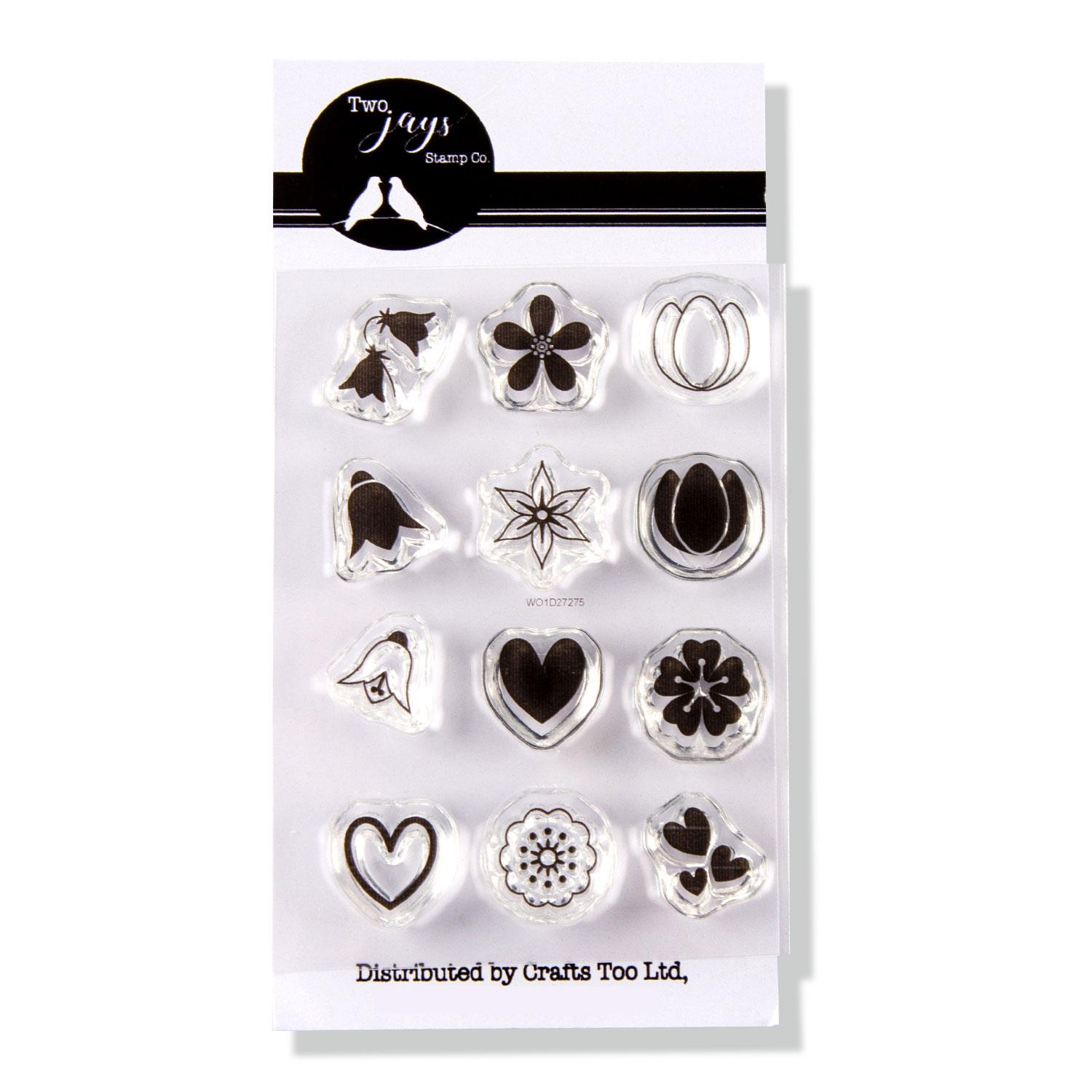 Two Jays Finger Stamp Collection Spring Icons has a total of 12 stamps that are manufactured from a high quality photopolymer. This means that the stamps are clear and that you get a high quality image every time you stamp.