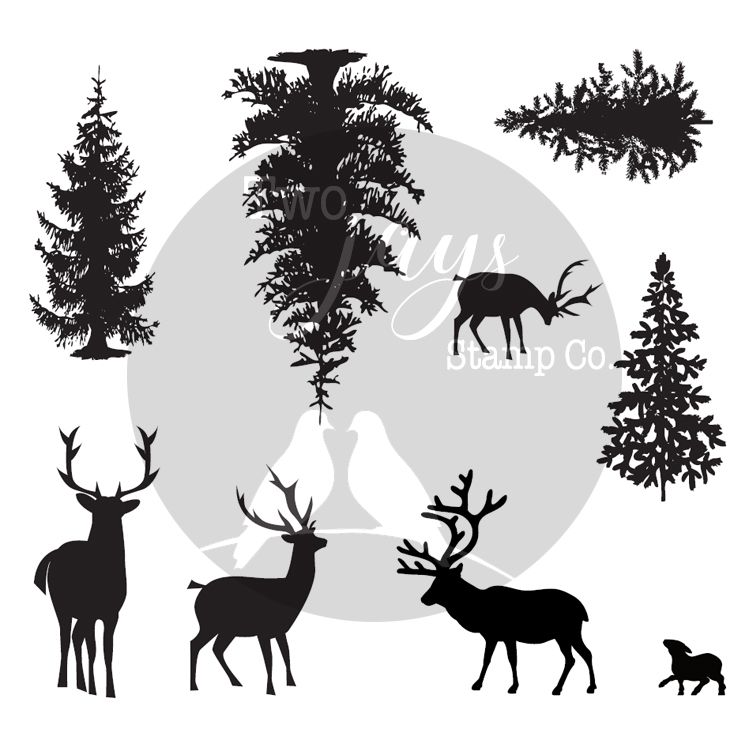 Two Jays Stamp Trees & Deers