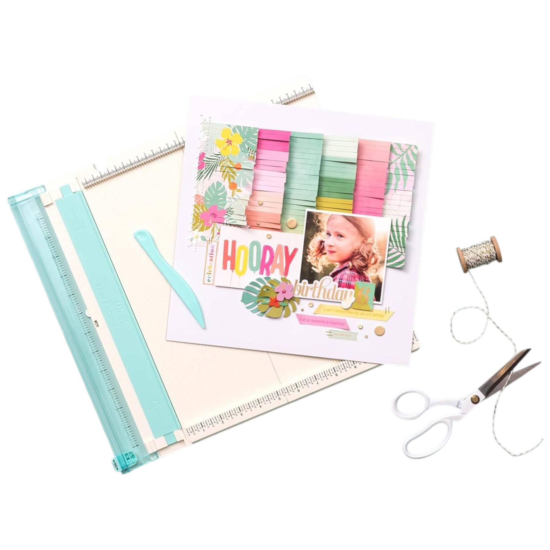 - This board includes a 12×12 inch surface area, providing ample space for cutting and scoring large scrapbook pages.