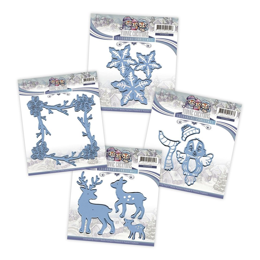 Yvonne Creations Colourful Christmas – Poinsettia, Bird, Reindeer & Frame set