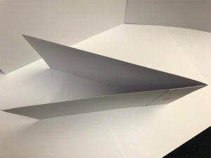 Make a card blank by trimming a piece of A4 white card lengthways at 13cm; score at 24cm. Cut another piece of card 13cm x 24cm. Butt the smaller piece into the fold of the longer piece and stick down to create a tent fold card blank.