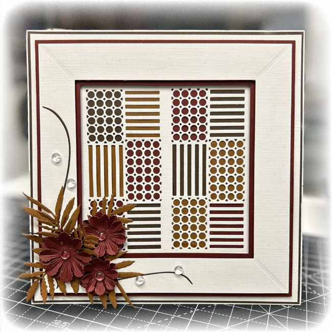 Add to an 8”x8” card blank with a layer of chocolate and white card cut to 7 3/4” square
